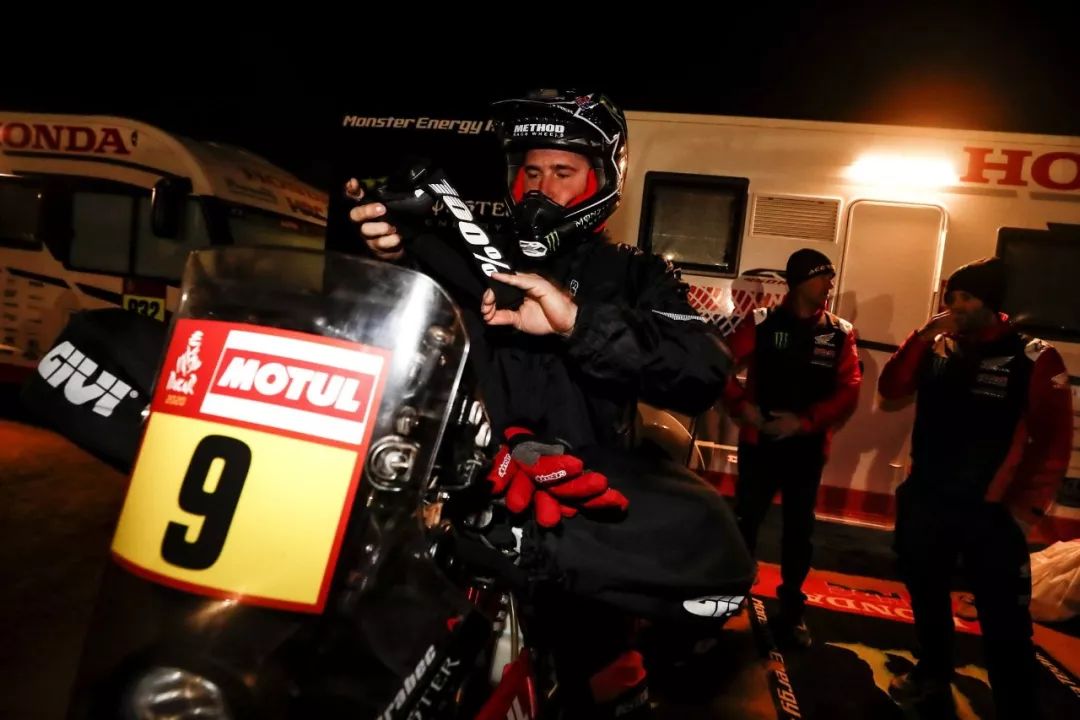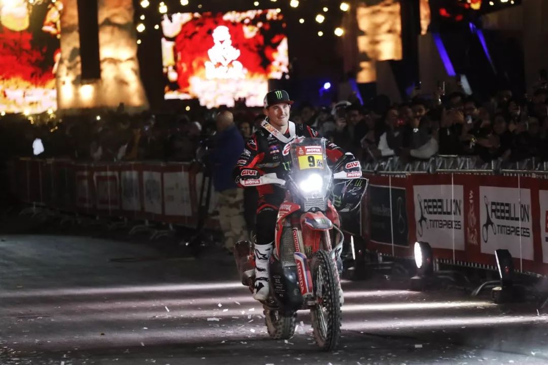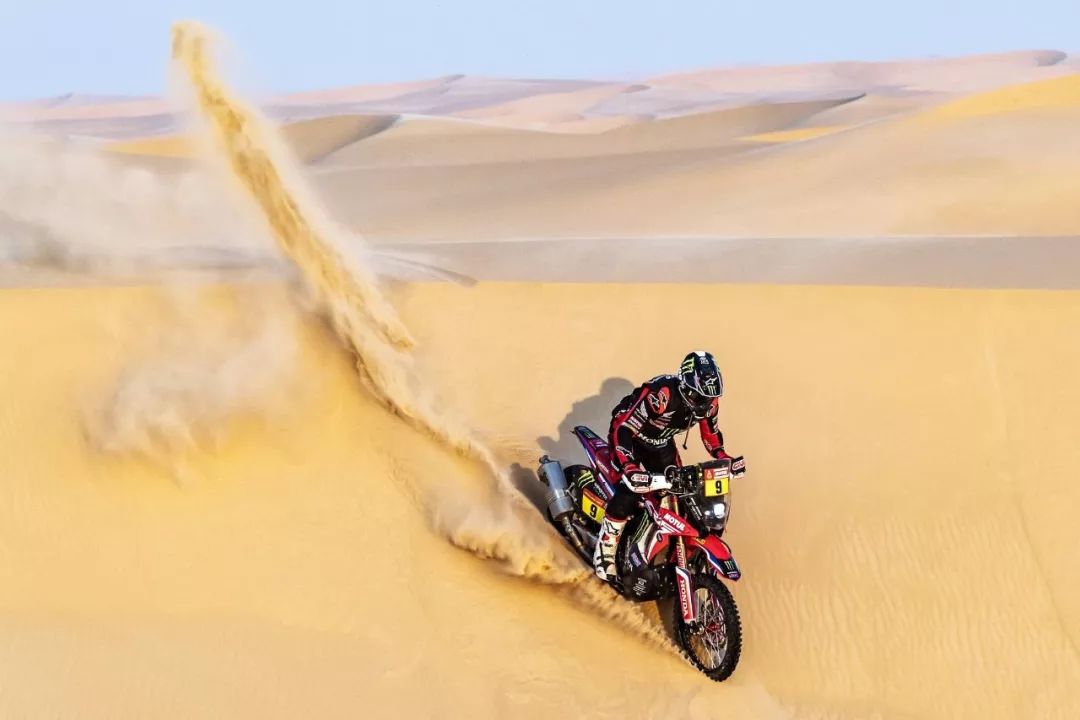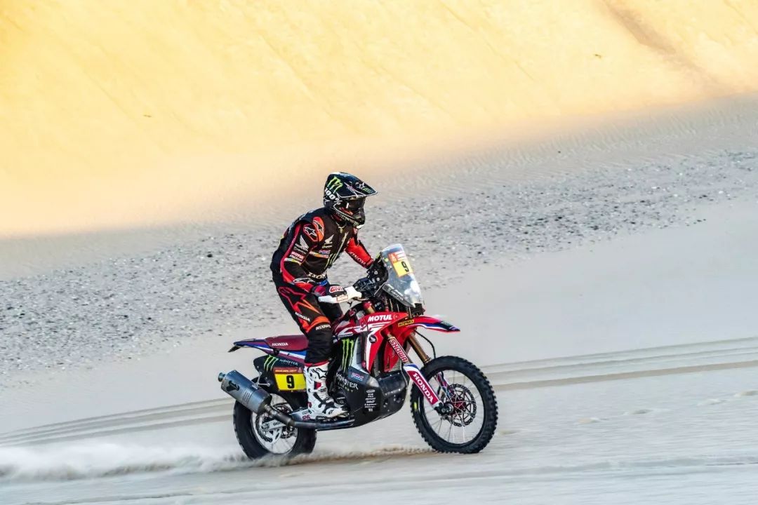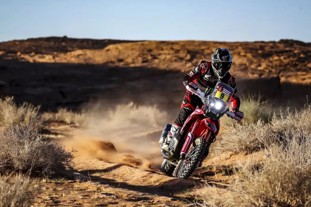 一月 17 日,2020' 達(dá)喀爾拉力賽第 12 賽段結(jié)束之后,HRC(Honda Racing Corp,Honda 賽車公司)車隊(duì)的 9 號(hào)車、美國(guó)車手巴拉貝(Ricky Brabec)奪得了摩托車組的冠軍。