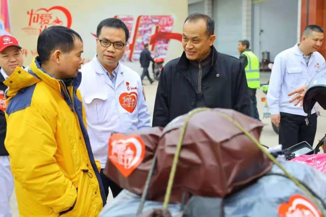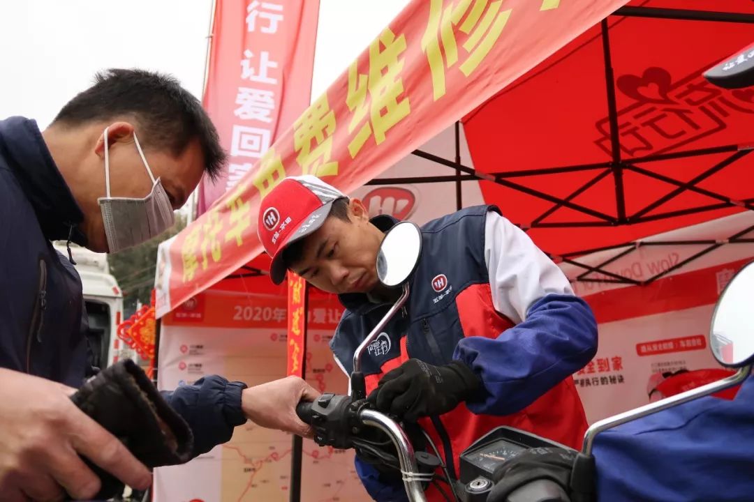 1月20、21日,廣汽集團(tuán)執(zhí)委會委員、五羊-本田常務(wù)副總經(jīng)理賴博軼,五羊-本田副總經(jīng)理張文青,五羊-本田黨委書記、工會主席鄭欽,營銷服務(wù)部部長曾禮書,工會副主席、黨群工作部部長趙曉捷等領(lǐng)導(dǎo)親臨“為愛讓行”現(xiàn)場,與返鄉(xiāng)騎手交流溝通,了解相關(guān)情況并慰問了在一線辛苦工作的五羊-本田員工們。在現(xiàn)場,領(lǐng)導(dǎo)們?yōu)榉掂l(xiāng)騎手送上了掛歷、反光馬甲、行李防塵套等禮物,同時也為五羊-本田的維修師傅們帶來了慰問品。無論是接受服務(wù)的人還是提供服務(wù)的人,大家的臉上都寫滿了幸福和滿足……