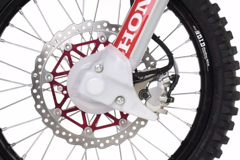 動(dòng)力方面,CRF 450 Rally采用的是單缸液冷發(fā)動(dòng)機(jī),和CRF450越野車上的并不是一款發(fā)動(dòng)機(jī),CRF 450 Rally的發(fā)動(dòng)機(jī)缸徑行程為97mmx60.8mm,而CRF450越野車上的是96mmx62.1mm,氣門機(jī)構(gòu)也不同,CRF 450 Rally是DOHC 4氣門結(jié)構(gòu),而CRF450越野車是SOHC 4氣門結(jié)構(gòu),最后變速箱也不一樣,CRF 450 Rally是六速變速箱,而CRF450越野是五速變速箱,CRF 450 Rally最大功率超過(guò)45kW(60hp),而CRF450越野最大馬力只有50hp左右。