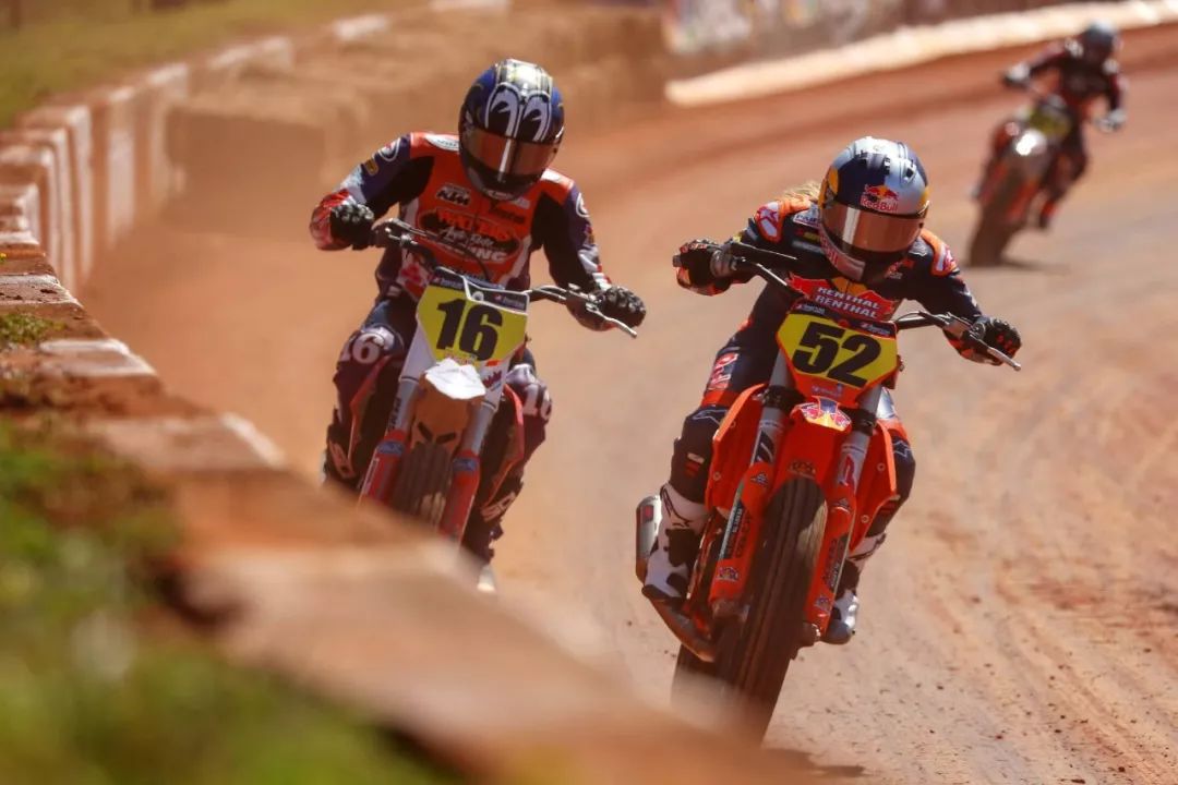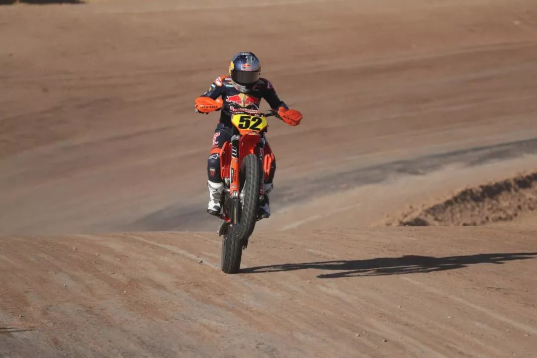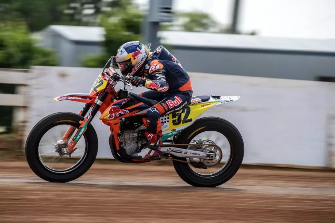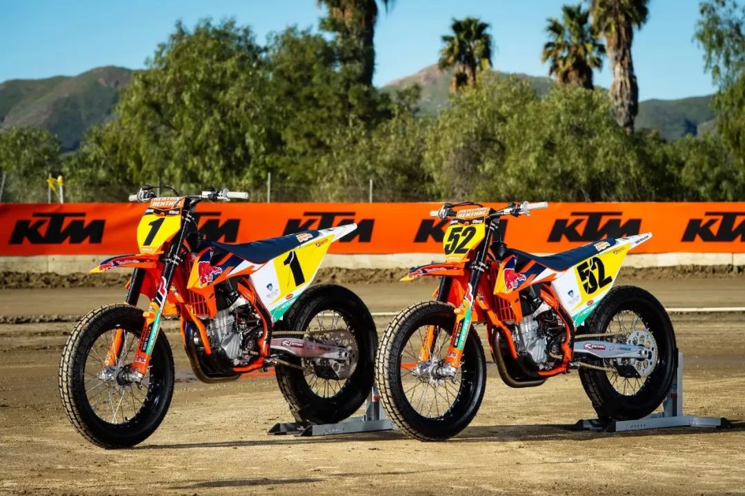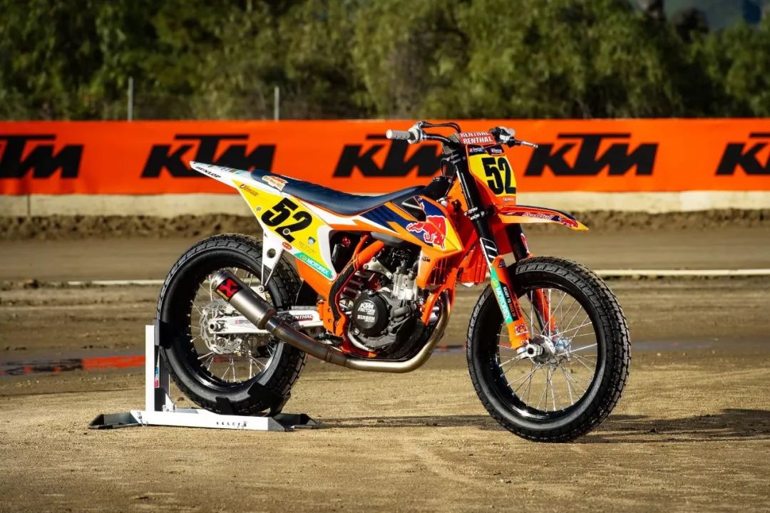 參加 AFT 比賽的 KTM 工廠車隊(duì),采用的是以越野賽車 SX-F450 為基礎(chǔ)改造而成單汽缸 FT 賽車。