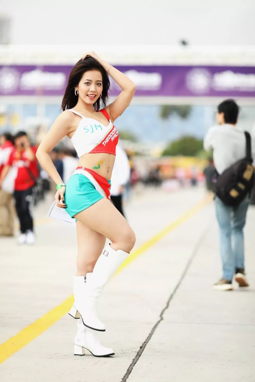 下面的圖片,比賽現(xiàn)場的賽車女郎(攝影:Max Cher)。