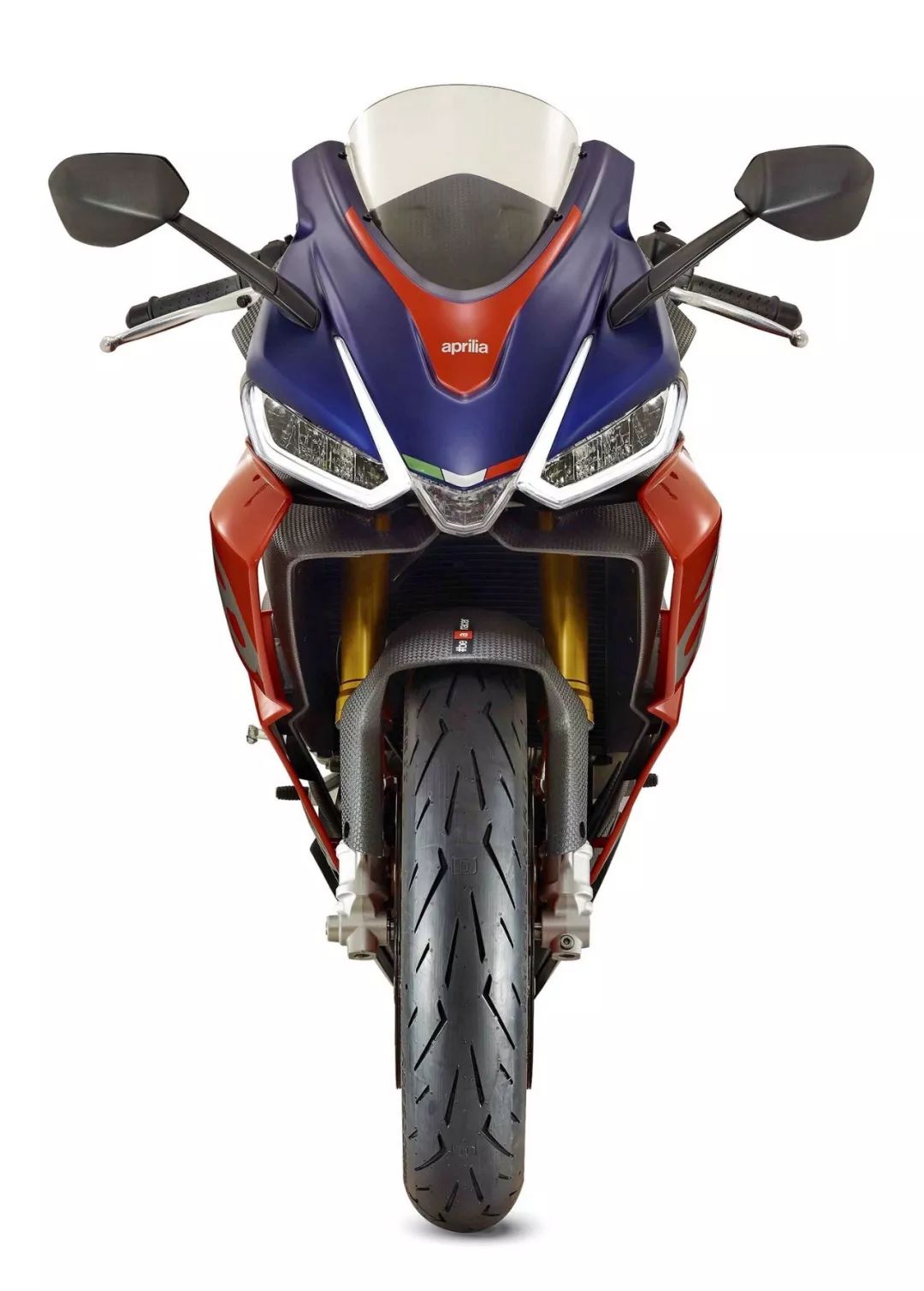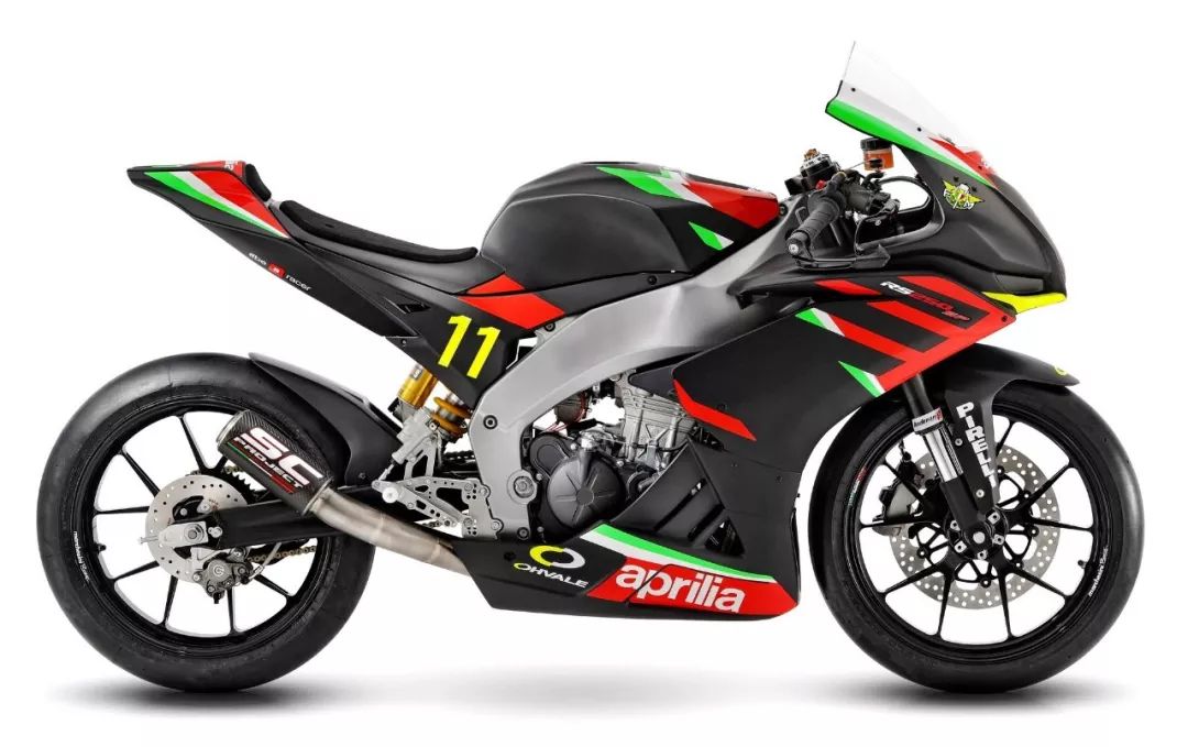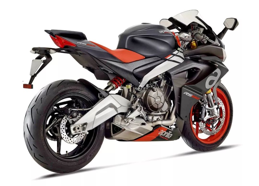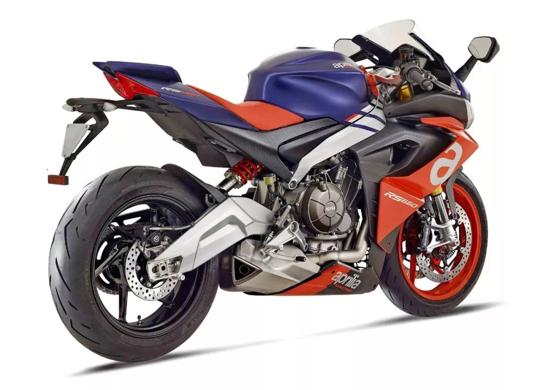 車體方面,采用了一副鋁合金雙翼樑式的車架,整流罩的結(jié)構(gòu)特點(diǎn)明顯是來(lái)自 V4 的,前整流罩采用了雙層式的設(shè)計(jì)、并以之作為一個(gè)完整的空氣動(dòng)力附件。乘坐位置的設(shè)計(jì)考慮到了舒適性,有一個(gè)相對(duì)較厚的鞍座,不太高的腳踏位置,以及安裝在前叉上方、稍微上揚(yáng)安裝的車把。而全車重量?jī)H為 169 公斤。在初階段,新車將提供兩個(gè)外觀圖案:一個(gè)是黑色為主調(diào)、襯以紅色的標(biāo)準(zhǔn)圖案;另一個(gè)則是向當(dāng)年搭載 RGV250r 兩沖程發(fā)動(dòng)機(jī)的中量級(jí)車型 1994' RS250 Reggiani Replica 雷基安尼( 注1)復(fù)制版致敬的、紫色與紅/白色相襯的圖案。