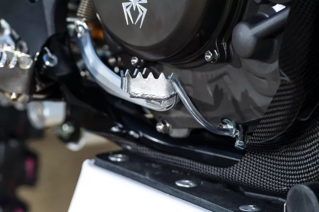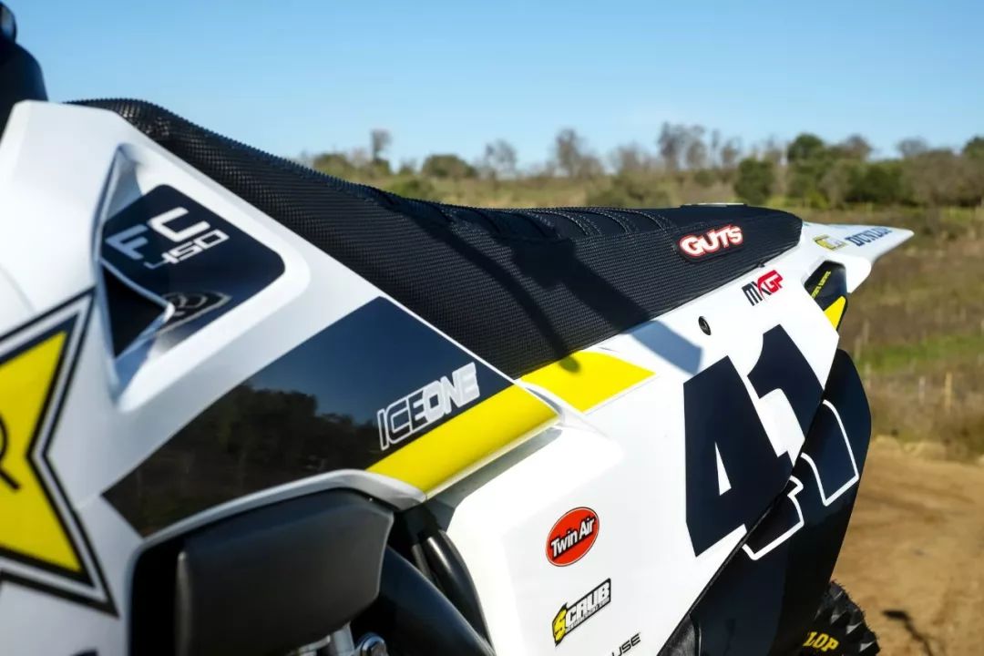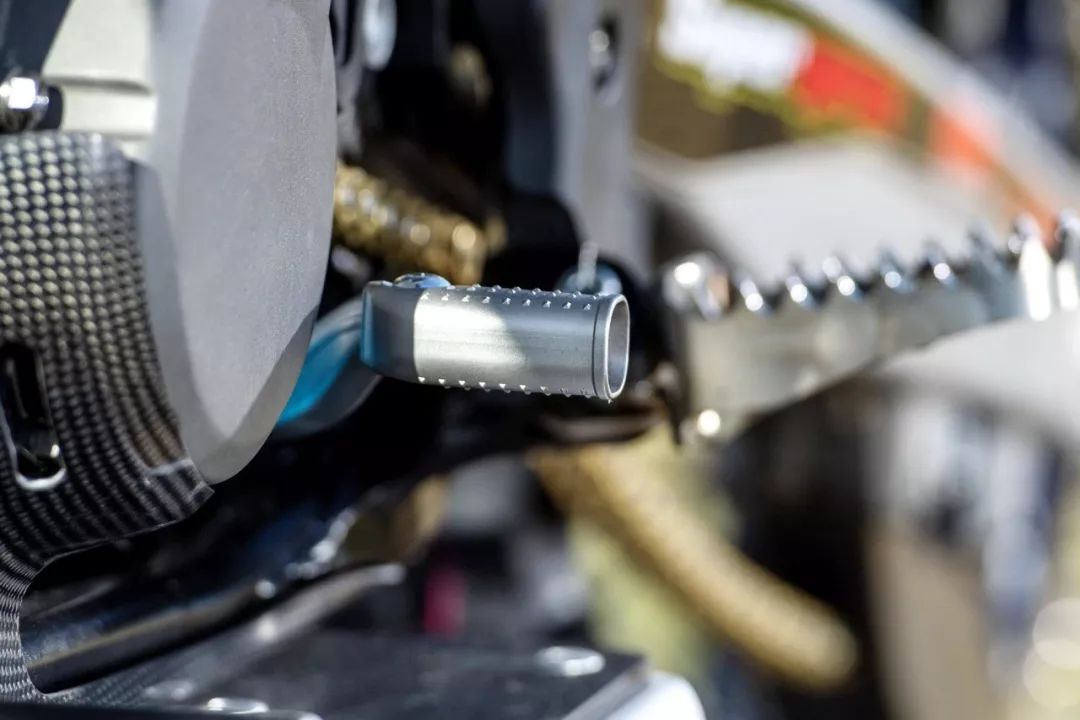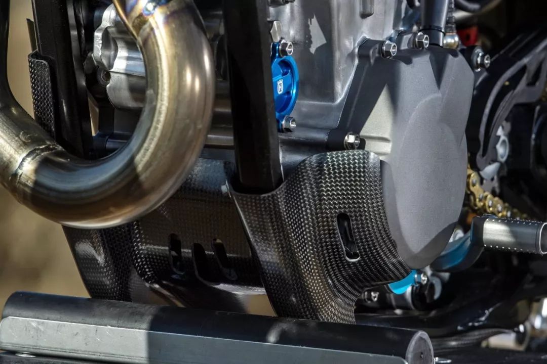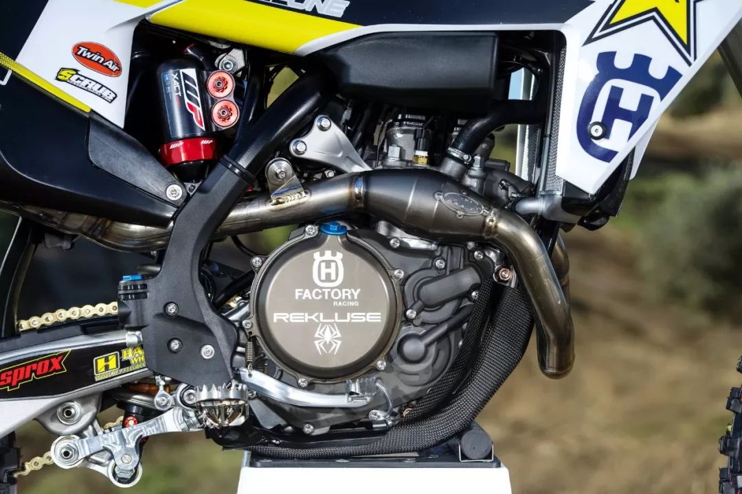 工廠機(jī)器是從市售版的 2020' FC450 越野賽車(chē)改造而成。市售版的 FC450 搭載一副單汽缸、SOHC 四汽閥的發(fā)動(dòng)機(jī),最大動(dòng)力輸出 63 匹。出于賽例的限制,廠車(chē)版的 FC450 一般會(huì)借助自有的技術(shù)與充分的源數(shù)據(jù),對(duì)配汽系統(tǒng)(凸輪軸、汽閥彈簧等)作出修改和更細(xì)致的調(diào)校,換裝了經(jīng)過(guò)針對(duì)性開(kāi)發(fā)的排汽系統(tǒng)與對(duì)應(yīng)的 ECU 數(shù)據(jù)包,Rekluse 的強(qiáng)化離合器(該品牌甚至有提供越野賽車(chē)用的半自動(dòng)離合器)。前后懸掛系統(tǒng)改用了 WP XACT 頂級(jí)的配置,賽車(chē)級(jí)的防滑鞍座,碳纖維制、或 CNC 加工而成的組件,在車(chē)體上可謂隨處可見(jiàn)。