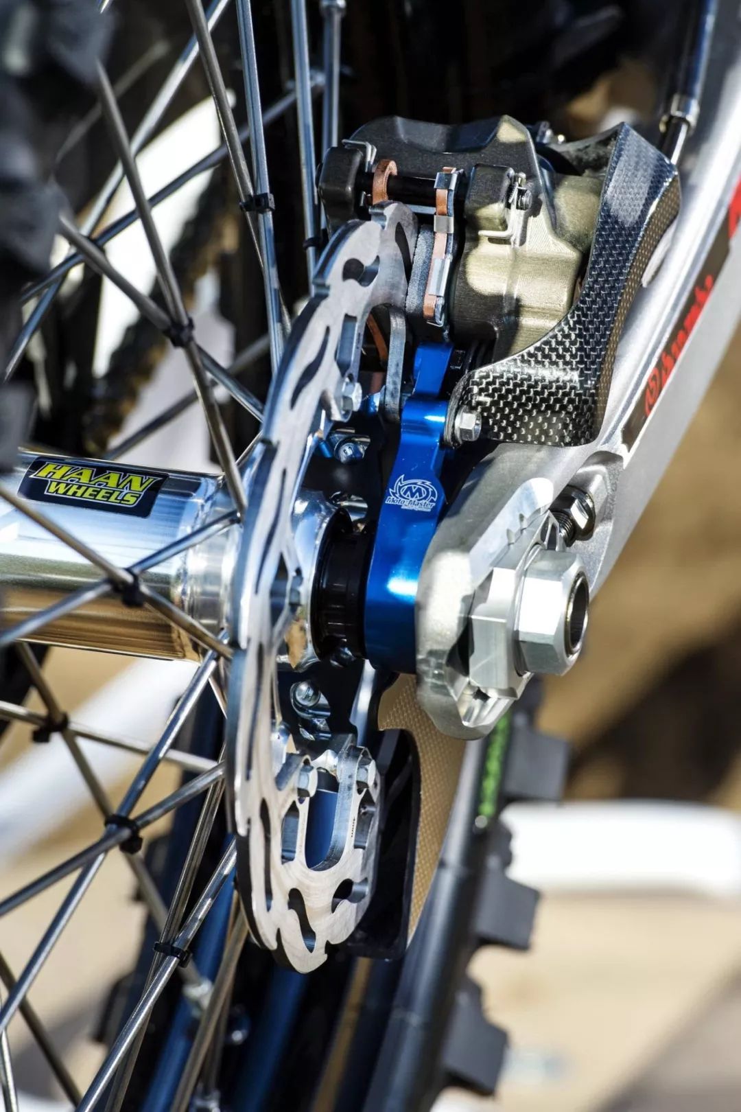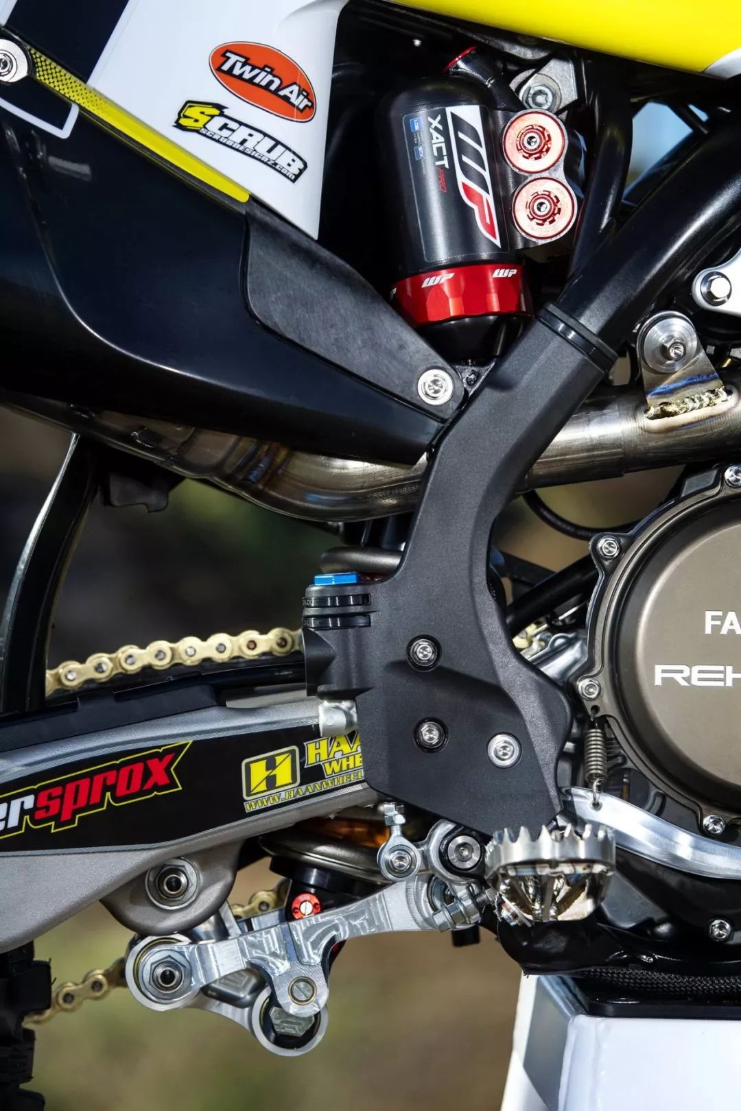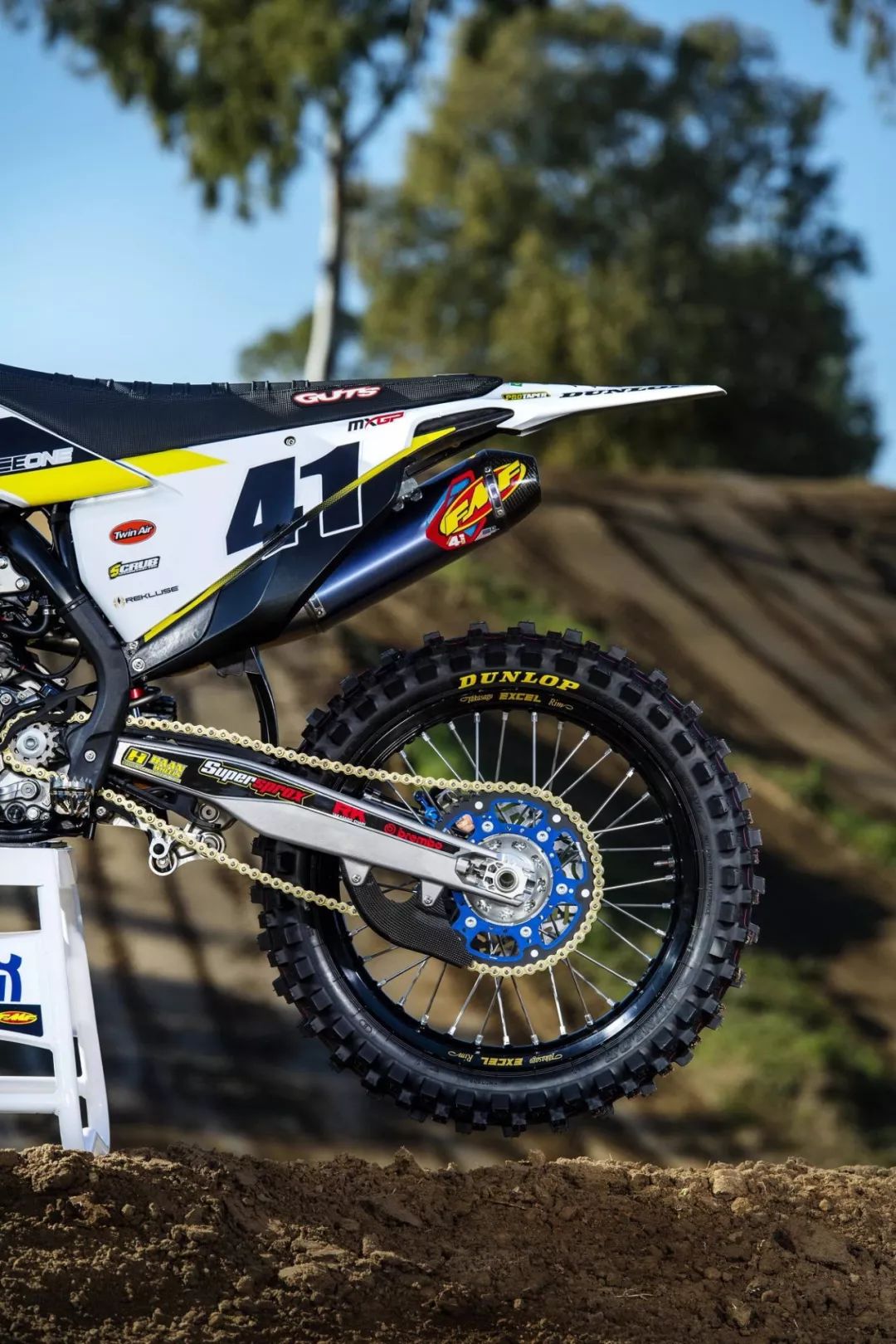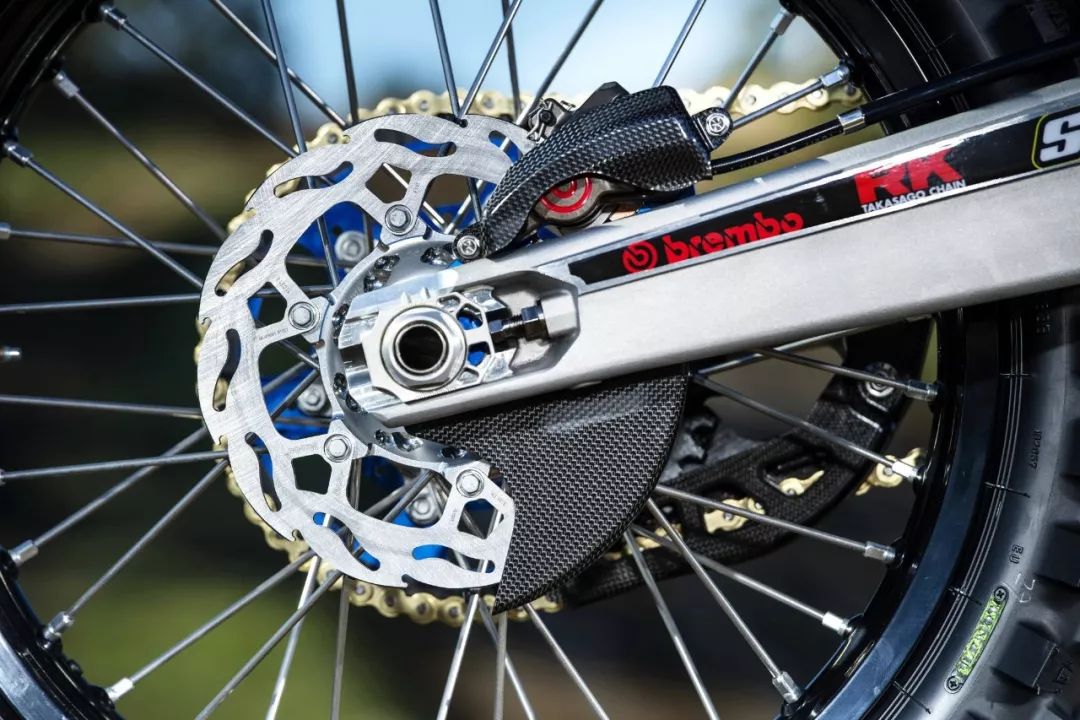 工廠機(jī)器是從市售版的 2020' FC450 越野賽車(chē)改造而成。市售版的 FC450 搭載一副單汽缸、SOHC 四汽閥的發(fā)動(dòng)機(jī),最大動(dòng)力輸出 63 匹。出于賽例的限制,廠車(chē)版的 FC450 一般會(huì)借助自有的技術(shù)與充分的源數(shù)據(jù),對(duì)配汽系統(tǒng)(凸輪軸、汽閥彈簧等)作出修改和更細(xì)致的調(diào)校,換裝了經(jīng)過(guò)針對(duì)性開(kāi)發(fā)的排汽系統(tǒng)與對(duì)應(yīng)的 ECU 數(shù)據(jù)包,Rekluse 的強(qiáng)化離合器(該品牌甚至有提供越野賽車(chē)用的半自動(dòng)離合器)。前后懸掛系統(tǒng)改用了 WP XACT 頂級(jí)的配置,賽車(chē)級(jí)的防滑鞍座,碳纖維制、或 CNC 加工而成的組件,在車(chē)體上可謂隨處可見(jiàn)。