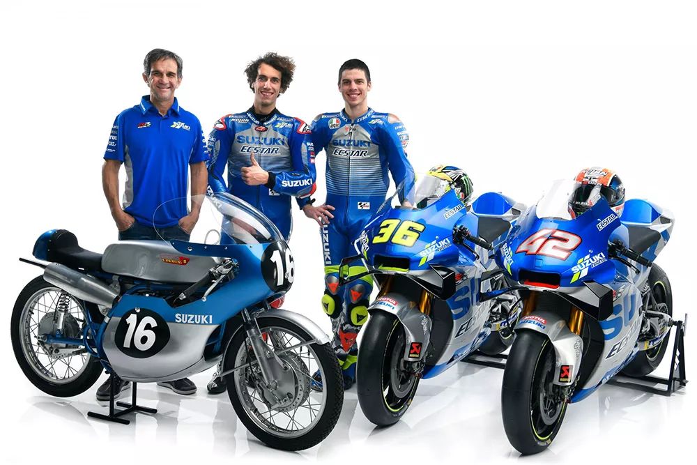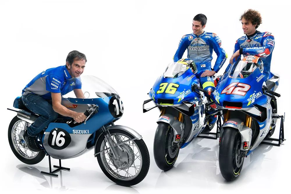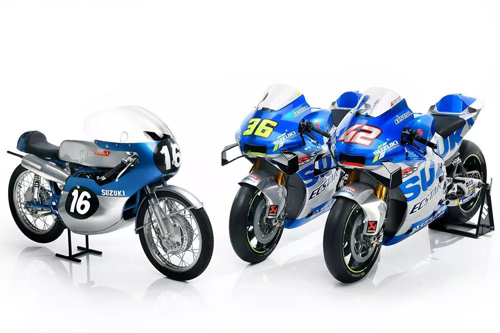 新的銀藍(lán)色涂裝背后寄與了SUZUKI在今年挑戰(zhàn)世界冠軍的期望,這個(gè)銀藍(lán)涂裝來(lái)自1962年SUZUKI摘下的首座世界冠軍的歷史涂裝,當(dāng)年是由德國(guó)車手Ernst Degner騎乘SUZUKI RM62賽車,成功贏下50c.c.級(jí)別的世界冠軍。