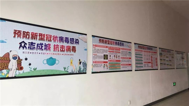 公司在廠區(qū)入口、食堂等重點(diǎn)區(qū)域懸掛橫幅、放置看板,開(kāi)展健康提示和疫情防控知識(shí)宣傳教育。