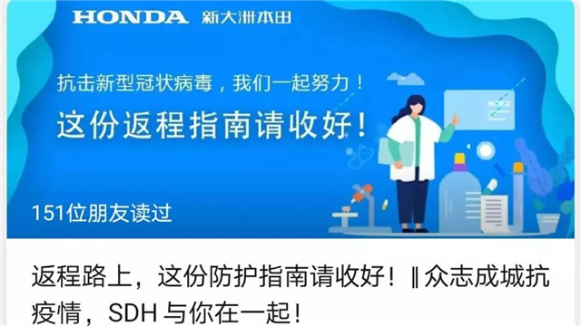 核心提示:復(fù)工準(zhǔn)備為全力保障復(fù)工后到崗員工生命安全和身體健康,保障公司復(fù)工后的正常經(jīng)營(yíng)秩序,新大洲本田全面加強(qiáng)內(nèi)部管理,從嚴(yán)做好疫