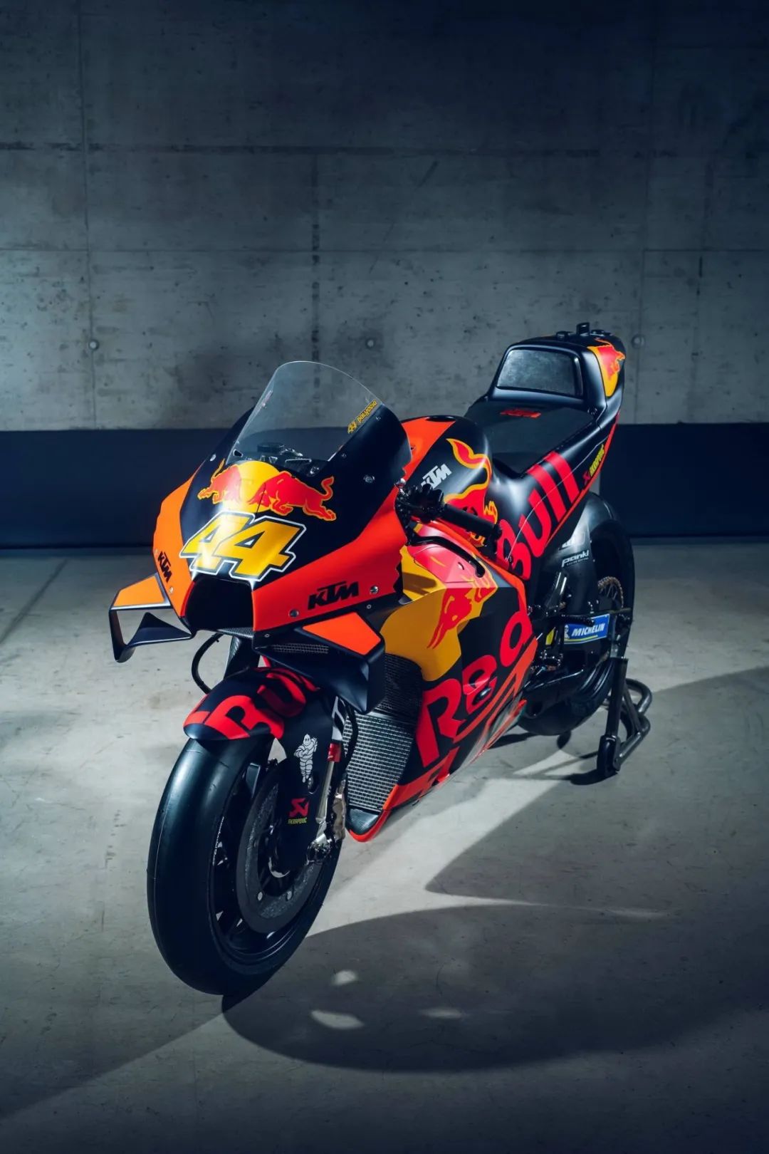 在 2020 MotoGP 賽季,KTM 工廠車隊(duì)繼續(xù)是 Red Bull 紅牛,車手組合是 44 號(hào)車的西班牙車手小 E(Pol Espargaro,艾斯帕加羅),以及今年從 Moto2 升級(jí)上來(lái)、33 號(hào)車的南非車手賓達(dá)(Brad Binder)。