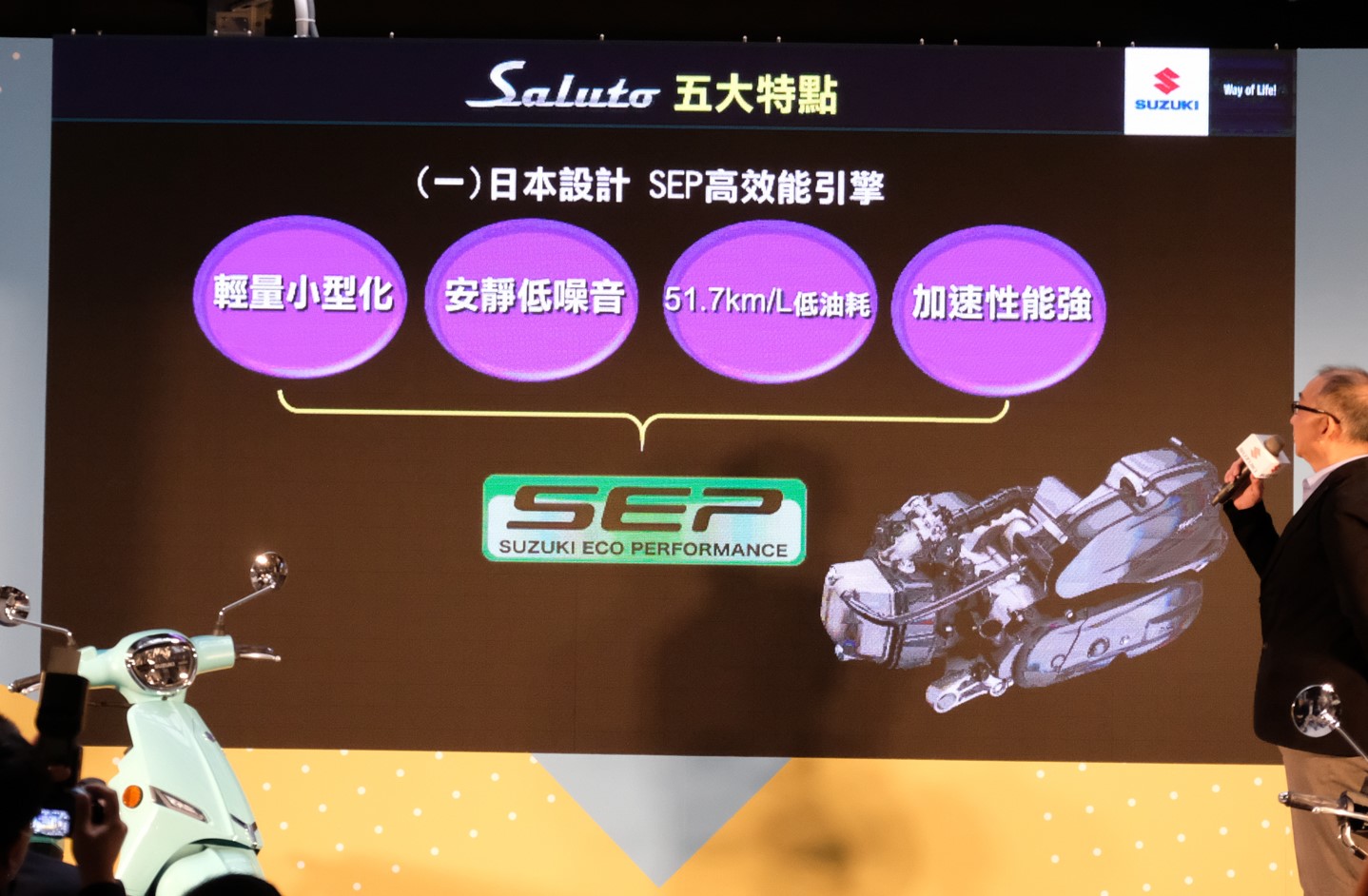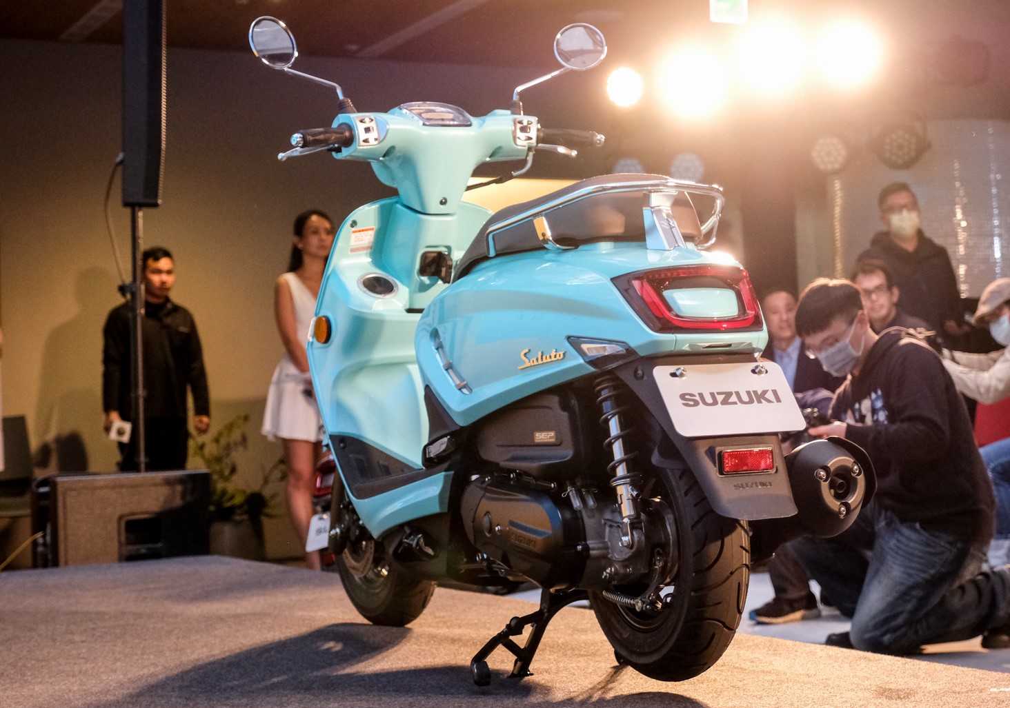 大家都知道臺(tái)灣省算得上是“踏板王國(guó)”,因?yàn)樘厥獾牡乩憝h(huán)境,踏板在臺(tái)灣省的地位舉足輕重,所以很多國(guó)際大品牌都在臺(tái)灣推出針對(duì)當(dāng)?shù)氐奶厥廛囆?。近日臺(tái)鈴機(jī)車(臺(tái)灣鈴木)正式舉行Saluto新車發(fā)表活動(dòng),現(xiàn)場(chǎng)公布售價(jià):78,000元臺(tái)幣(約合人民幣1.8萬(wàn))。
