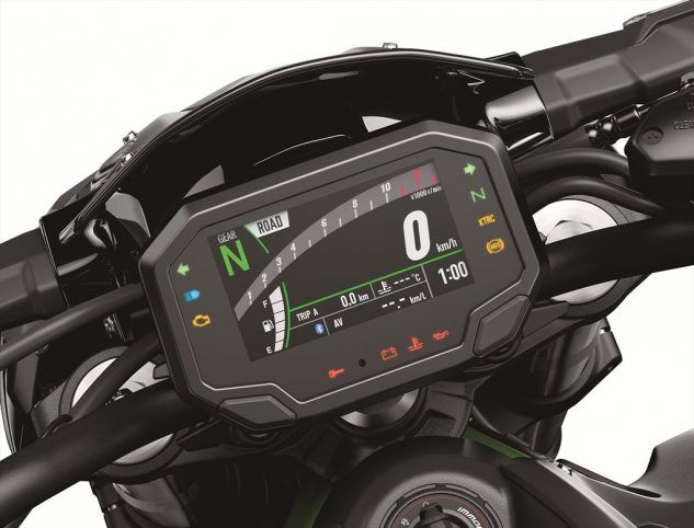 2020款Z900擁有三臺(tái)車當(dāng)中最好的TFT儀表,除了非常易于閱讀外,還可以通過Kawasaki Rideology應(yīng)用程序,調(diào)節(jié)騎行模式,可切換的牽引力控制和藍(lán)牙連接。還具有輔助的滑動(dòng)離合器,雙節(jié)氣門和全LED照明燈。