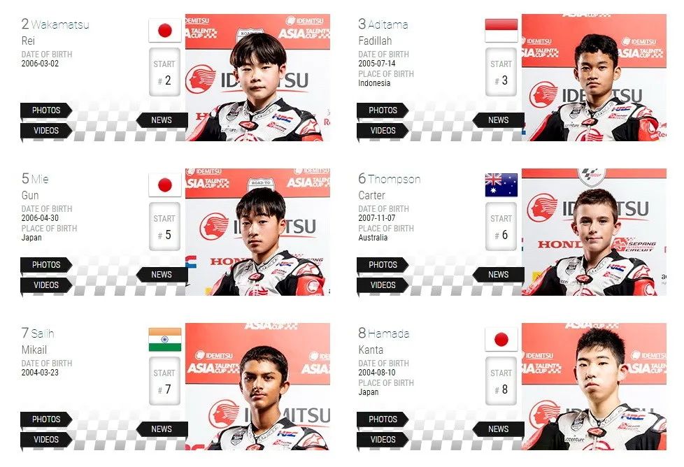 今年的正式參賽名單上,將有 18 位車手參與角逐(包括后備車手),來自六個不同的國家,其中日本車手最多、有五位。其中年紀(jì)最輕的是 6 號車、來自澳大利亞的 Carter Thompson,只有 12 歲。而年紀(jì)最大的是現(xiàn)年 18 歲的 13號車、來自馬來西亞的 Syarifuddin Azman。