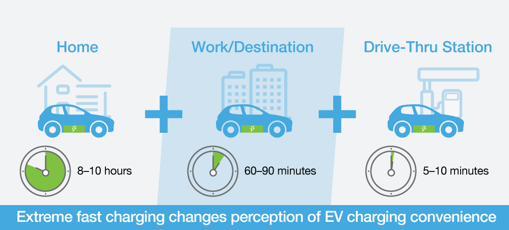 這意味著你可以出門在外,知道在沿街道或高速公路的快速充電站為電動車充電,可能只需要五到十分鐘。對于公路旅行而言,極速充電可讓你在與汽油車相同的時間內到達目的地。而且可以在家中充滿電的情況下出門,而汽油車則不可能。