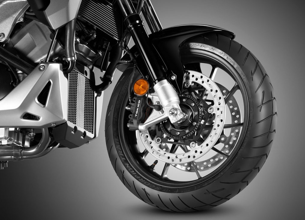 本田VFR800X車架輕巧,獨特的單搖臂視覺沖擊感更強,并配備了新的車輪和制動器,前制動鉗是徑向的,以雙通道ABS作為標準配置,并且配備可調(diào)/可切換的本田可選扭矩控制(HSTC),更長的懸架行程提供更多的舒適感和通過性。