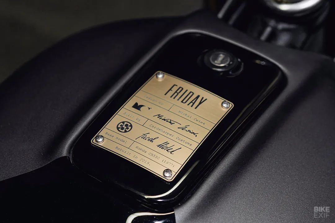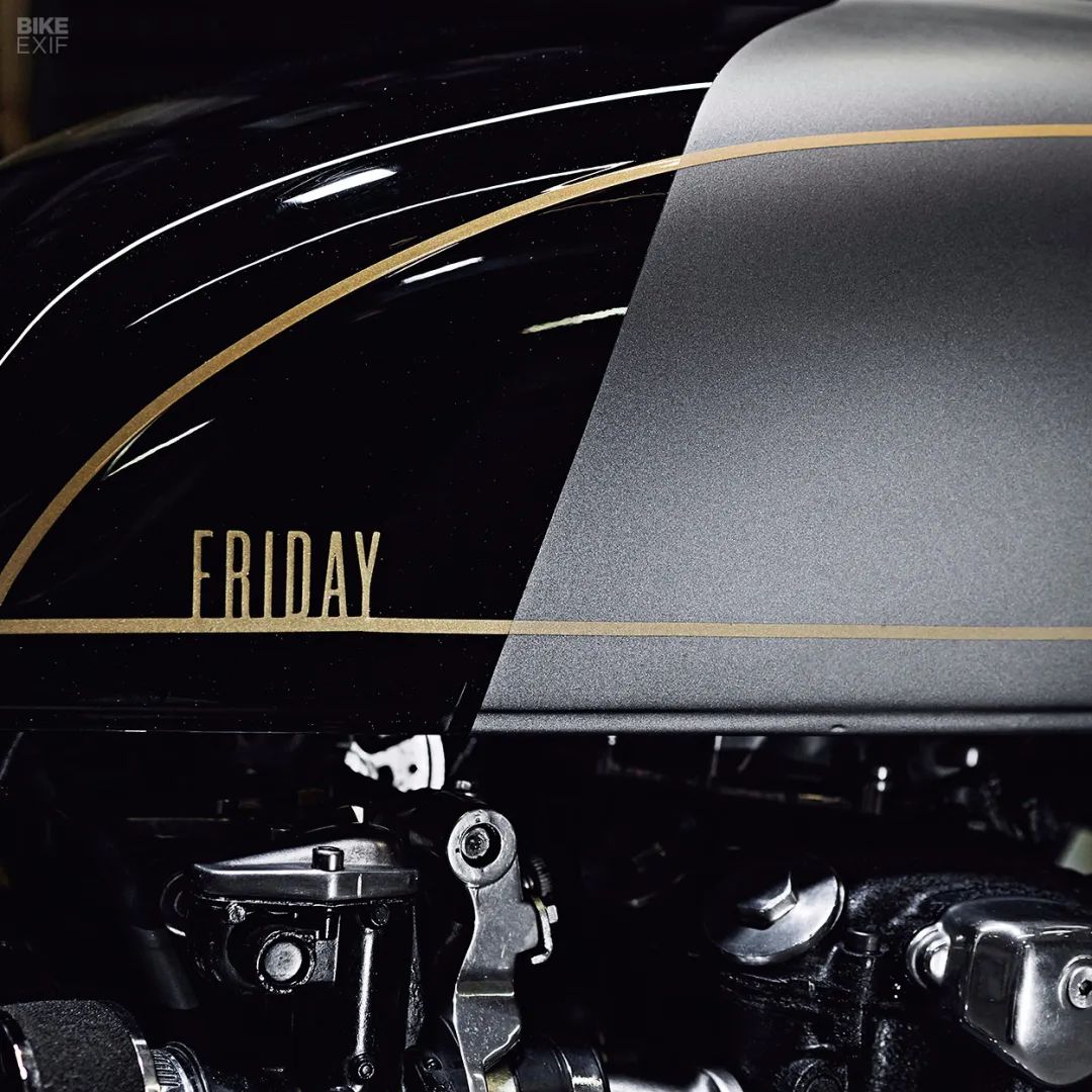 這臺(tái)SOHC 8氣門發(fā)動(dòng)機(jī)經(jīng)過(guò)了重新翻新,零件以及漆面都煥然一新,整車漆面也十分精細(xì),一臺(tái)1977年的老車在兩位設(shè)計(jì)師的手中變成了一件精美的工藝品,兩人也為這款車取了一個(gè)非常浪漫的名字——Friday星期五。