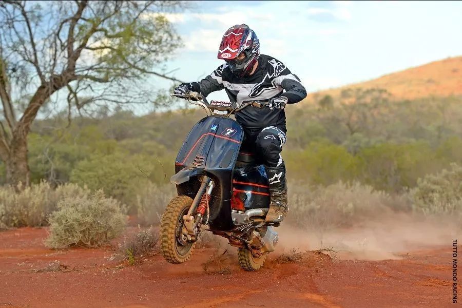 今年Baja 1000的參賽隊(duì)伍中有兩輛改裝Vespa參賽,駕駛者Leonardo Pilati和Pietro Bologna,均是意大利Vespa車友會(huì)成員,其中Pietro Bologna是意大利中部Vespa俱樂(lè)部主席,Leonardo Pilati則是一位經(jīng)驗(yàn)豐富的賽車手。兩人表示想要以Vespa來(lái)抗衡那些專業(yè)的越野車明顯不現(xiàn)實(shí),所以享受這個(gè)過(guò)程就好。兩輛Vespa也經(jīng)過(guò)了改裝,增加了下護(hù)板、換裝了越野輪胎和長(zhǎng)行程減震。兩人也建議,如果經(jīng)費(fèi)不富裕用Vespa參賽是不錯(cuò)的選擇。