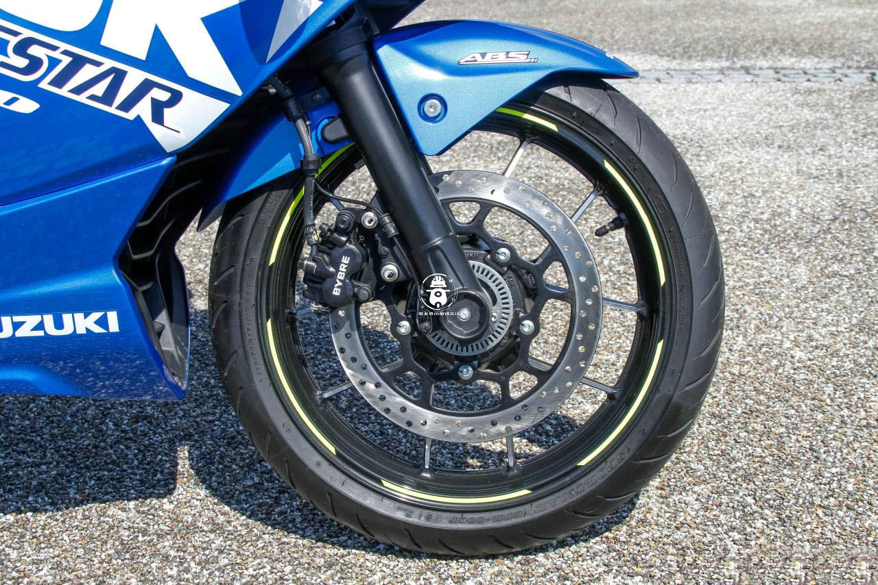 前剎車尺寸為300mm單盤,配備雙活塞卡鉗,以及ABS系統(tǒng)。