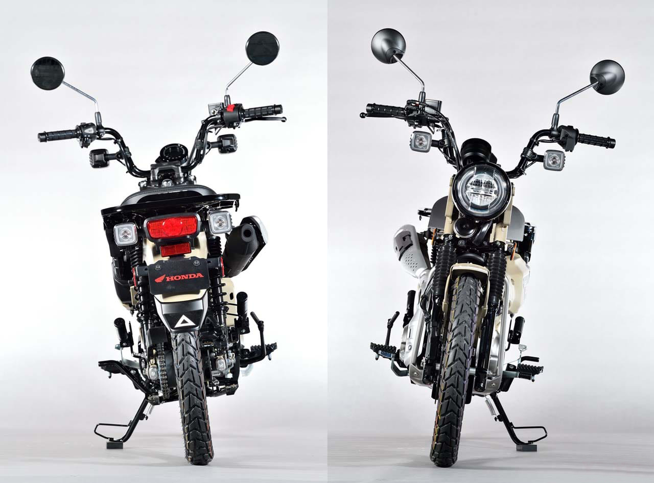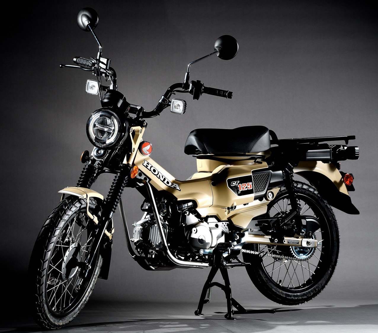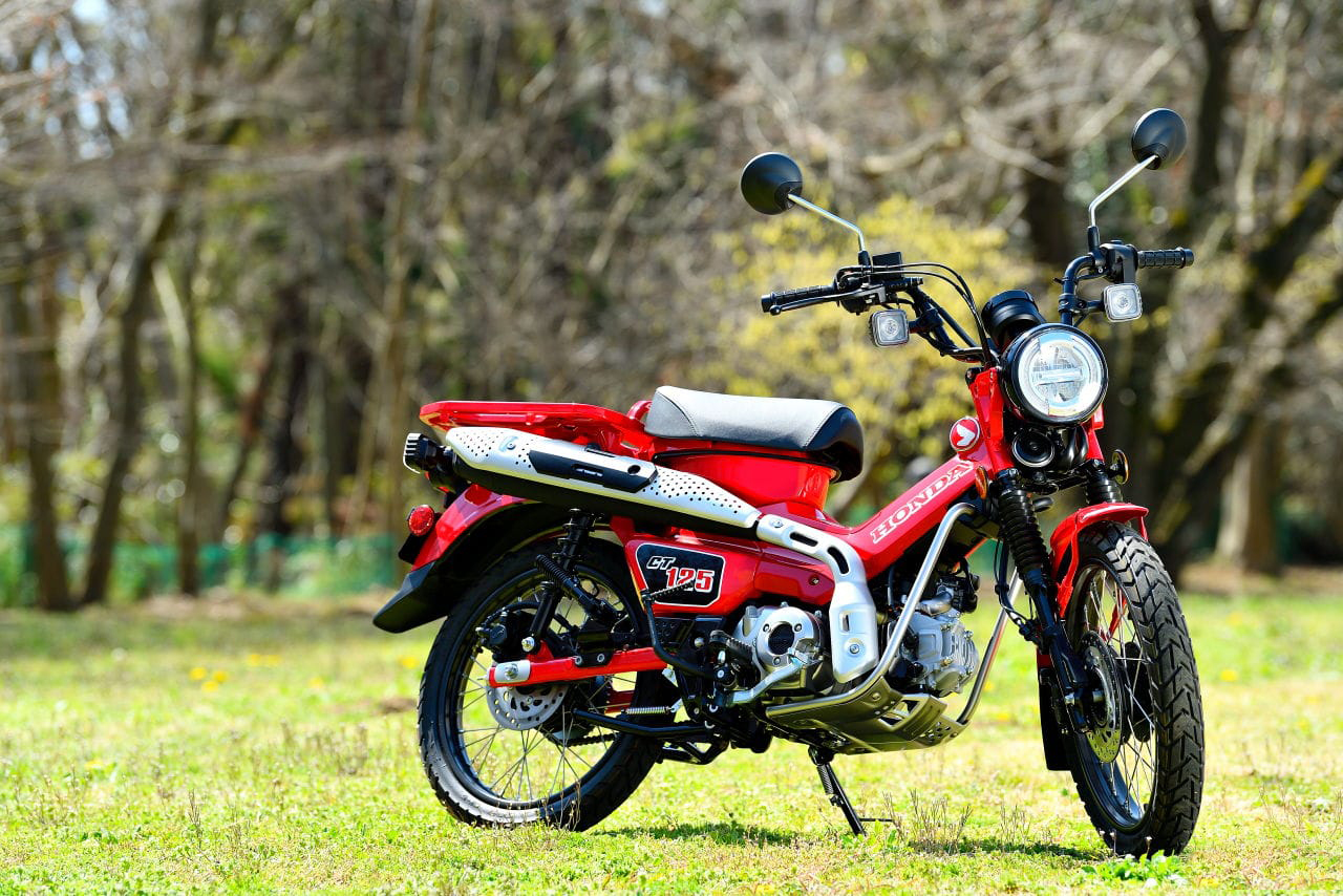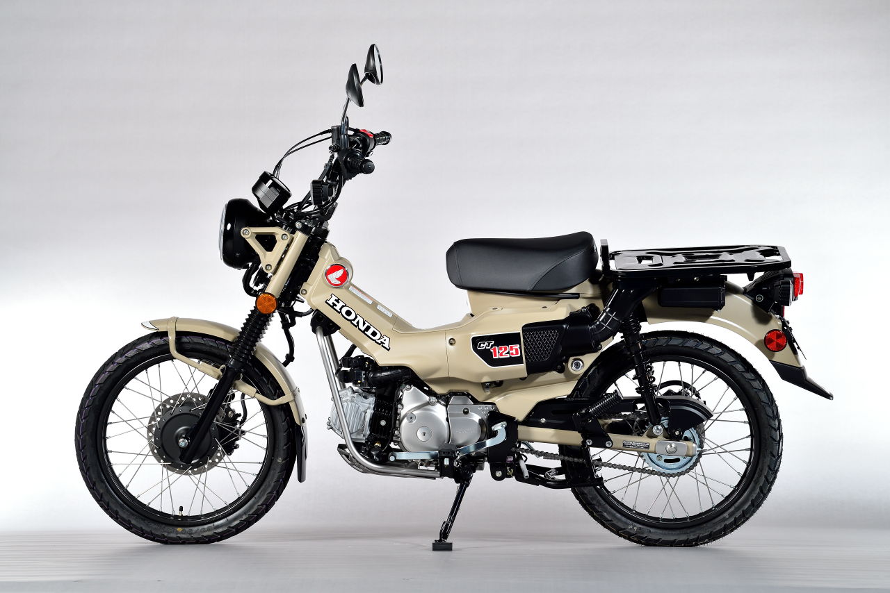 本田CT125 Hunter Cub具有多種戶外休閑配置,例如高位消音器,大型后置托架,前后輻條輪,鋼制擋泥板和防護(hù)裝置,是本田兩款輕便摩托車中的最新款,如今非常受歡迎。 獵人幼獸以現(xiàn)代技術(shù)重生,配備前后盤式制動(dòng)器,使用ABS,以及LED燈(僅限前大燈)。