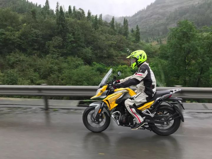 高速表現(xiàn):高速巡航時車體的穩(wěn)定性不錯,前部風擋位置較高,能夠起到很好的風保護作用。后部增加擋泥板的作用非常明顯。高速疾馳,也未見泥水飛濺。這很實用。不論高速,還是路況較好的國道,長時間高速巡航,最怕就是騎行駕姿給身體帶來的不適,這一點“猛鷙”值得表揚,它的騎行三角很中性,長時間駕駛不會太累。