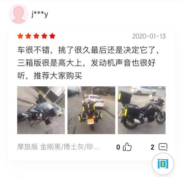 正是因為這份對摩旅,對機車的熱愛,越來越多選擇了猛鷙。成功購車的線上用戶,在各地商家的大力協(xié)助下第一時間喜提愛車,喜悅之情溢于言表。迫不及待的猛鷙熱評,加上緊隨而來的第二波“追評”,無不彰顯了猛鷙對于真實用戶預期的滿足和誠意回饋。這些評論可以高度概括為三大關鍵詞:“帥”、“值”,“沒選錯”。
