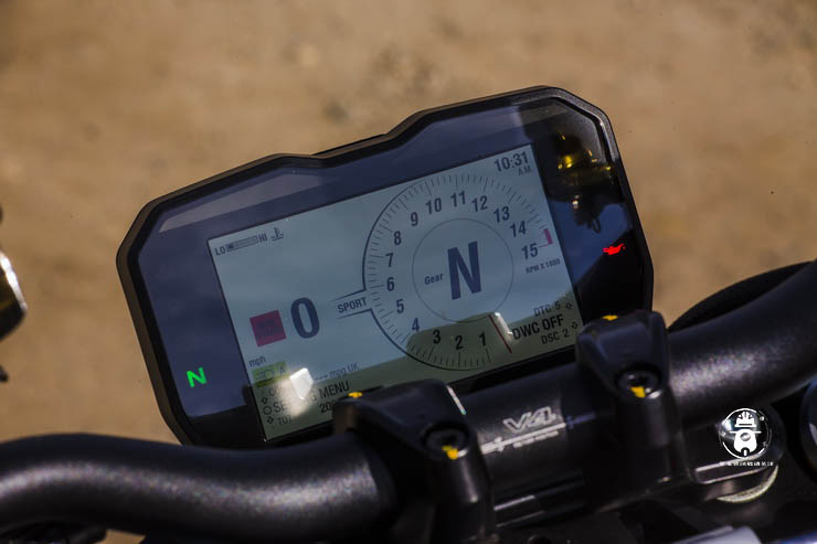 很多人覺得買得起這種級別車型的人會在乎油耗嗎?實際上很多人確實很在乎,Streetfighter V4配備16升的油箱,實測100km/h油耗為6L左右,這是在行駛100英里混合道路后所得出來的。不到300km的續(xù)航能力,大概在行駛到200km左右時,就該尋找加油站了。缺少油量表會使你會無法享受任何娛樂,加滿油后重新設(shè)置行程之后才能充分享受到駕駛樂趣。