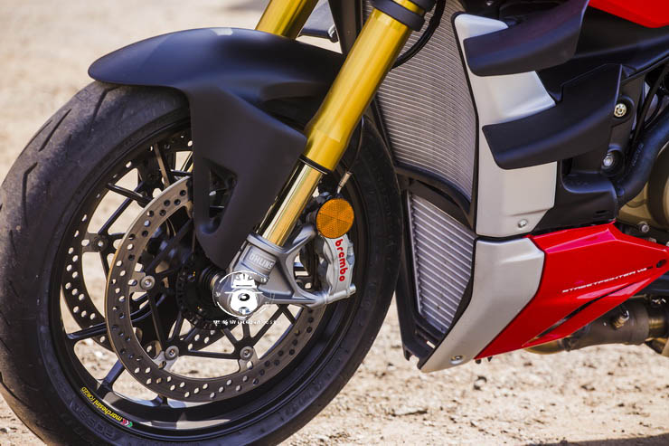 倍耐力的Diablo Rosso Corsa II是原廠輪胎的絕佳選擇,它們可靠,用途廣泛,可以快速預(yù)熱,并且在抓地力不太好的地面上也能有效發(fā)揮作用,在進行試乘期間,它們在路面上表現(xiàn)出色,并被證明是Streetfighter的完美搭檔。