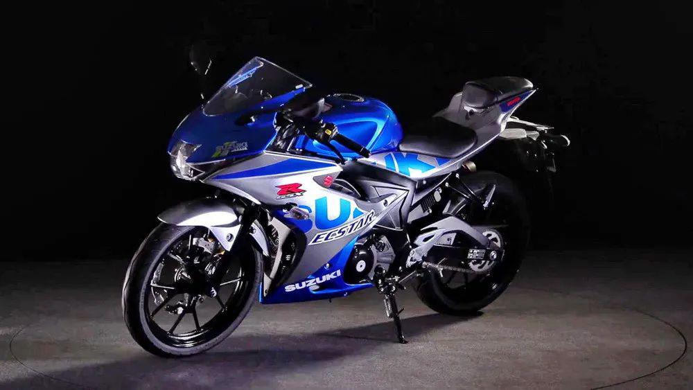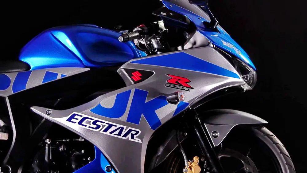 下圖:Suzuki 創(chuàng)立一百周年紀念圖案的 GSX-R125。