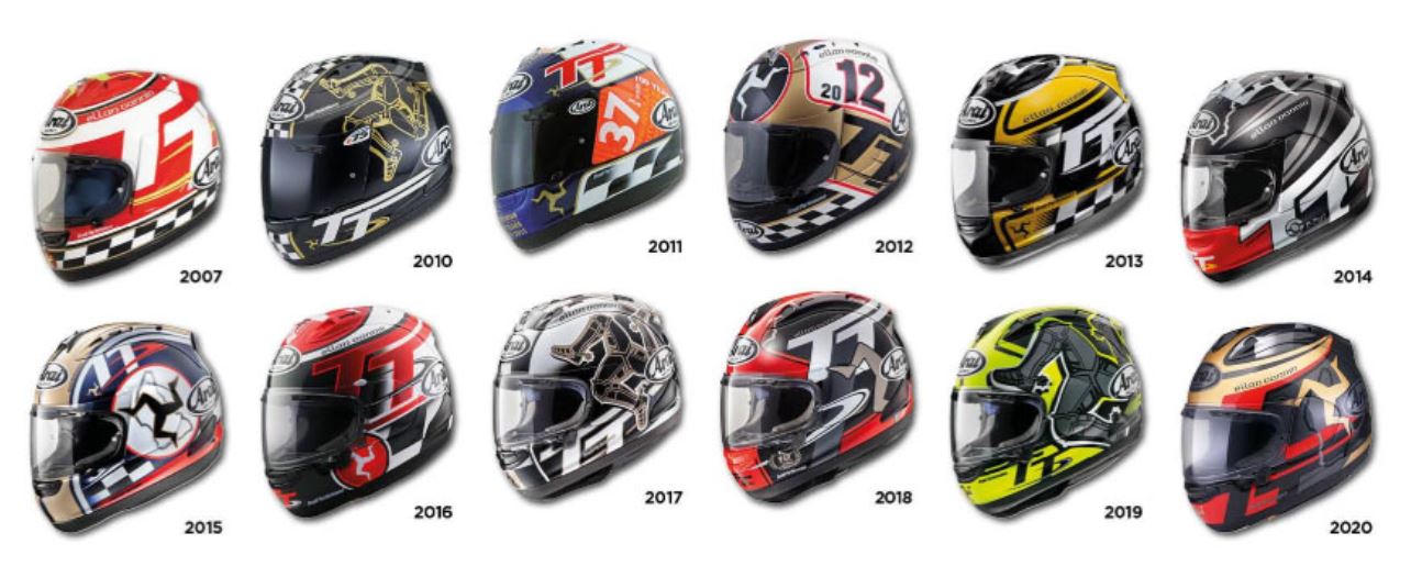 核心提示:自從2007年起,Arai每年都會(huì)推出曼島TT限量版頭盔,雖然2020年的賽事因?yàn)樾鹿谝咔槿∠茿rai仍然按原定計(jì)劃推出2020版曼島TT
