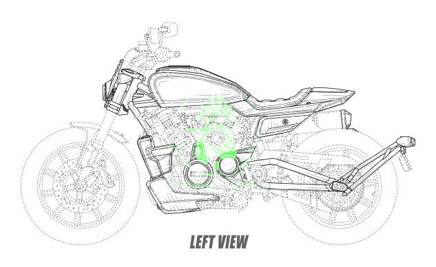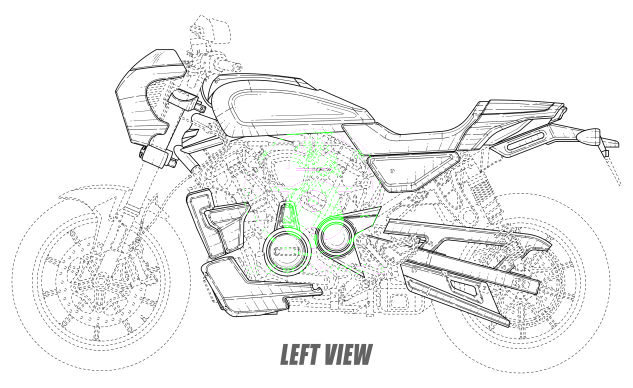 咖啡風格原型在設計文件中看起來與設計圖也很相似,但后搖臂,散熱器和排氣罩略有不同。設計圖缺少原型上的轉(zhuǎn)向信號燈,但也消除了后副車架之間座椅下方的塊狀。