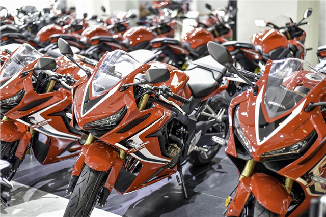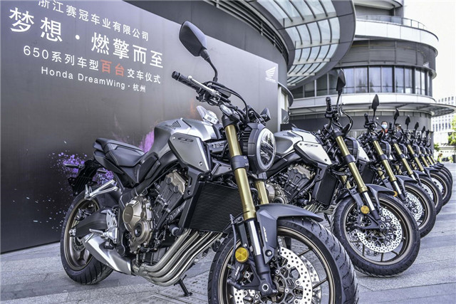 去年年末在Honda國內(nèi)公布上市的新一代中量級跑車CBR650R和復(fù)古街車CB650R可以說是很多車友都期盼已久的車型了,甚至在新車發(fā)布之前就已引發(fā)了大家的訂購熱潮,訂單從年初排到年中,除了去年年底國內(nèi)有少數(shù)幸運兒提到現(xiàn)車外,大部分訂購的車友還在翹首以盼。但是今天在這家位于杭州濱江世茂智慧之門的Honda DreamWing杭州6s店內(nèi),我們卻看到了整整百臺!
