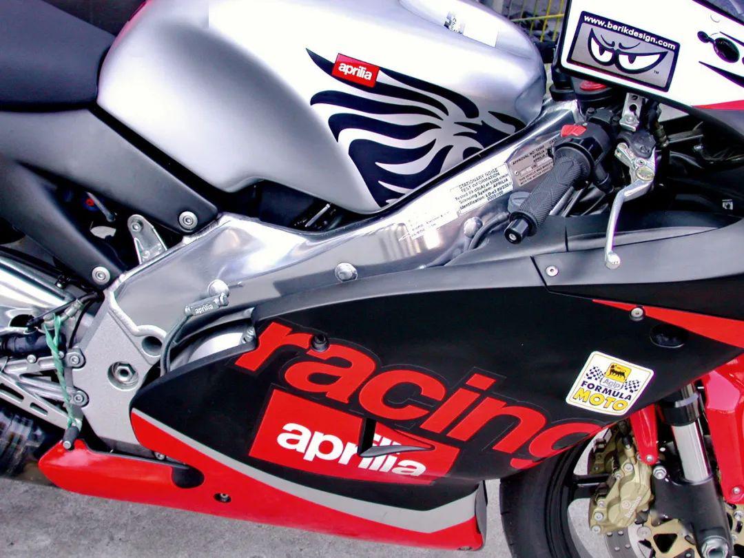 下面的圖片,2003 年一月份的時(shí)候,防護(hù)服飾品牌 Arlen Ness 在珠海賽車(chē)場(chǎng)舉辦的一次活動(dòng)上,展示了這臺(tái) Aprilia 阿普利亞的 RS250。