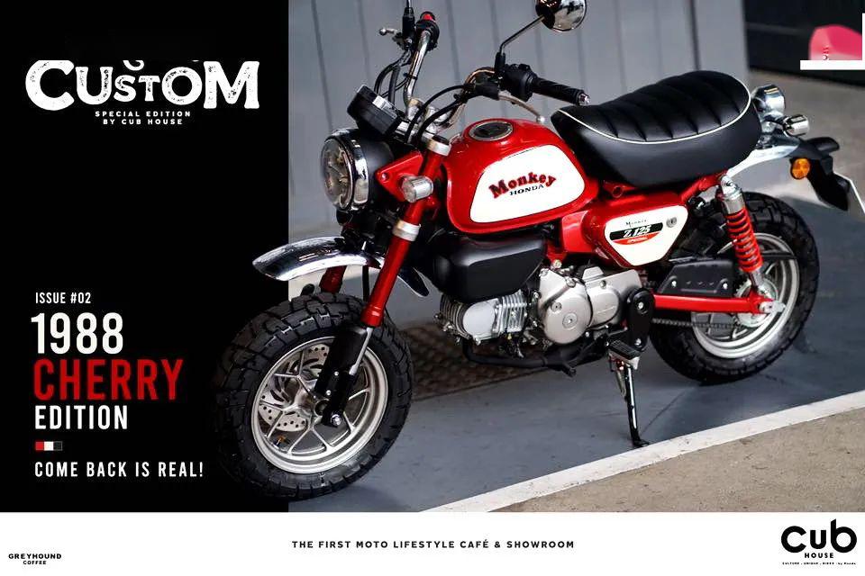 三月份的時候,Honda 在泰國當?shù)氐暮腺Y企業(yè) AP Honda,為其去年才設(shè)立的新銷售體系 Cub House “ 幼獸屋 ” 推出了一系列獨特圖案的 Z125 Monkey “ 猴子 ”,其中就包括了在三月初時候發(fā)布的 Cherry Edition 櫻桃版。