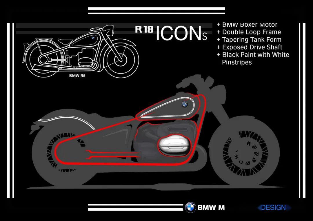 廠方表示,與之前的任何一款寶馬摩托一樣,全新的 R18 在技術(shù)和設計風格上都完全遵循了歷史上的寶馬摩托車之傳統(tǒng),它借鑒了一些著名的車型,如寶馬 R5。在設計理念上,新車將重點轉(zhuǎn)移回摩托車的基本要素:純粹的,不采納花巧、不實用的技術(shù),以 Boxer “ 拳師 ” 發(fā)動機作為乘坐樂趣的中心,結(jié)合一個 “ 良好的振動 ”。更重要的是,R18 采用了一個經(jīng)典的設計與明確的現(xiàn)代技術(shù)結(jié)合,創(chuàng)造了一個迷人的整體概念。