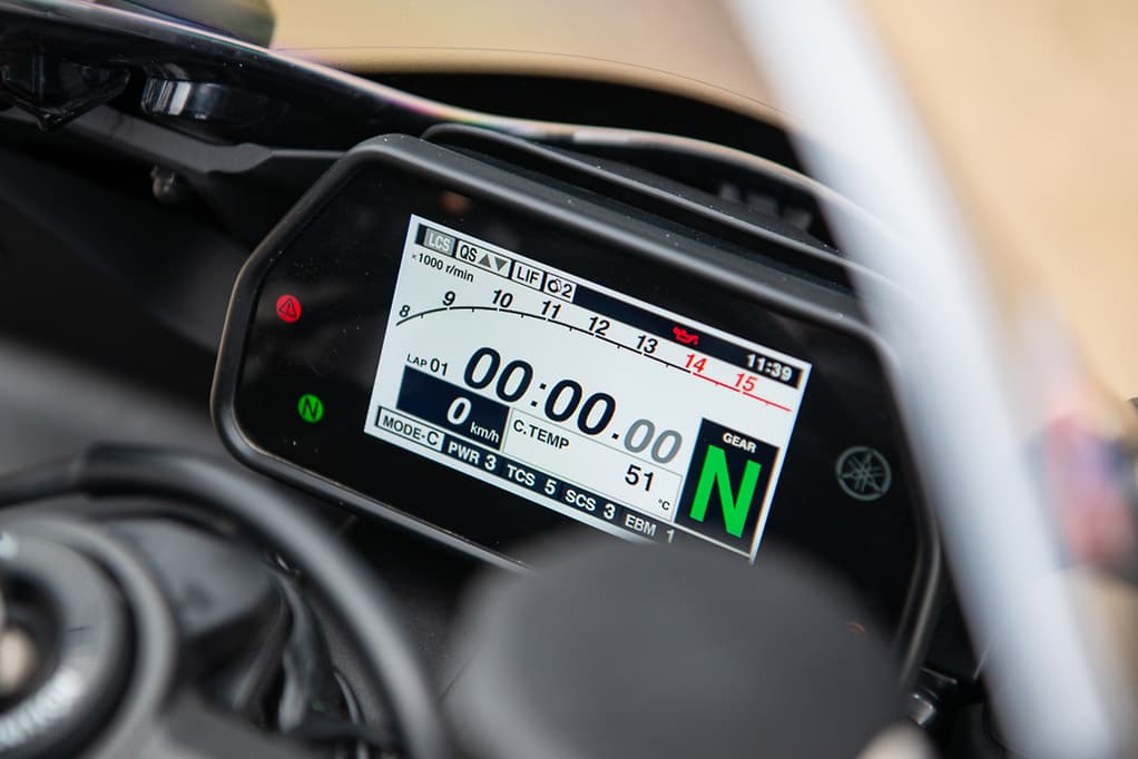 拿起用戶手冊,直接進入……實際上,還是有點復雜,儀表盤上的各種數(shù)據(jù)會讓一些人抓狂。讓我們打開說明書,PWR可讓您更改油門映射;TCS是多級牽引力控制;SCS是一種滑動控制系統(tǒng),可調節(jié)任何后輪滑動;EBM是三級發(fā)動機制動設置;LCS是發(fā)射控制系統(tǒng);LIF基本上是一種帶輪控制系統(tǒng);QSS與雙向快速換擋器有關。與MT-10SP或YZF-R1M不同,標準YZF-R1不配備ERS –或Öhlins電子賽車懸掛系統(tǒng),因此請將這些字母放在口袋中,然后再保存一次。