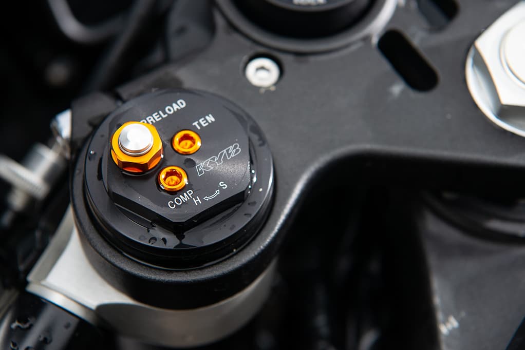 有一個新的KYB前叉和經過修改的后單避震,所有調節(jié)都非常容易,雖然并不是電子調節(jié),不過對于追求極限的騎士而言,能夠自己調整阻尼預載,也是一種非常享受的樂趣。而且不僅是在賽道上,在普通道路上這套避震的表現(xiàn)也足以令人嘆服,當然如果你要去跑坑洼路段的話,代價也會很讓你肉疼。