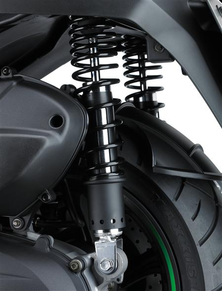 J125的懸掛系統(tǒng)由37毫米的伸縮式前叉,雙后減震器組成,后避震可進(jìn)行5級(jí)調(diào)節(jié)。同時(shí),制動(dòng)系統(tǒng)采用前后碟剎的形式,前260/后240mm單制動(dòng)盤,此外川崎J125還配備了標(biāo)準(zhǔn)的ABS系統(tǒng)。