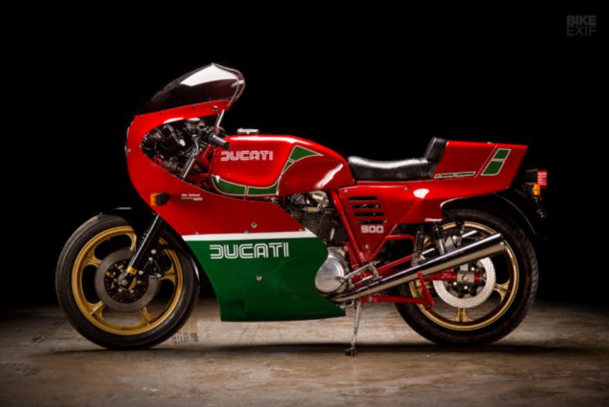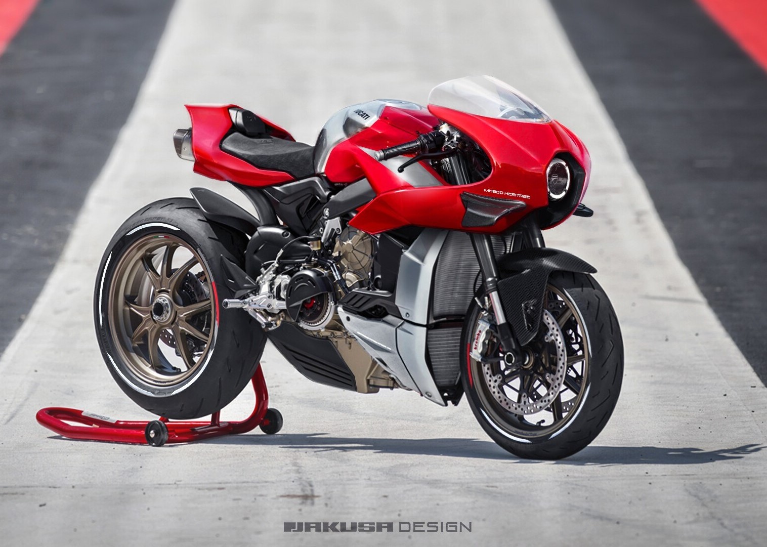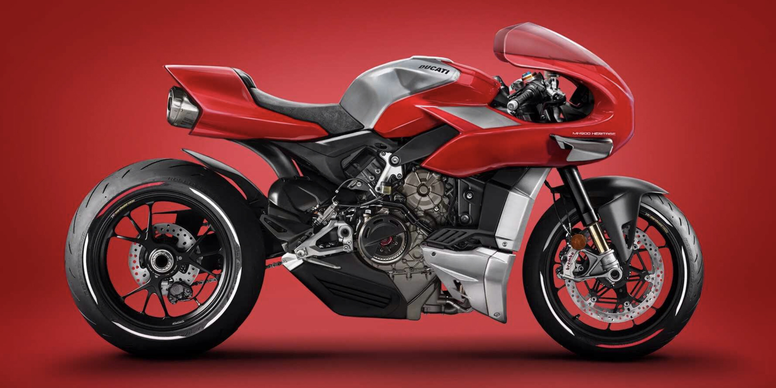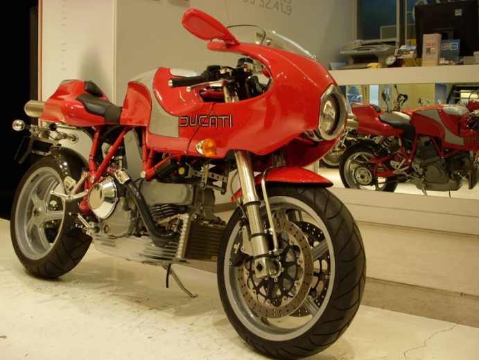 杜卡迪最初的H900e由Pierre Terblanche設(shè)計(jì),以向Mike Hailwood 1978年的賽車致敬。MH900e最初的原型配備,904cc排量的2氣門風(fēng)冷V型雙缸發(fā)動(dòng)機(jī),配備Desmodromic氣門系統(tǒng),最大馬力74Ps/8000rpm的最大容量,最大扭矩76Nm/6500rpm,匹配6速變速箱。