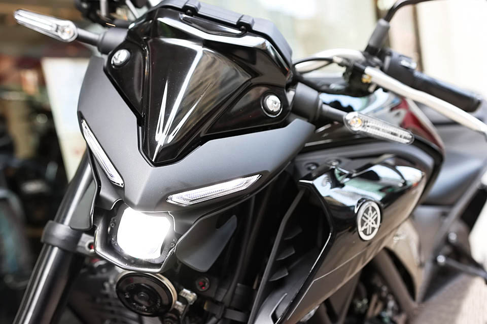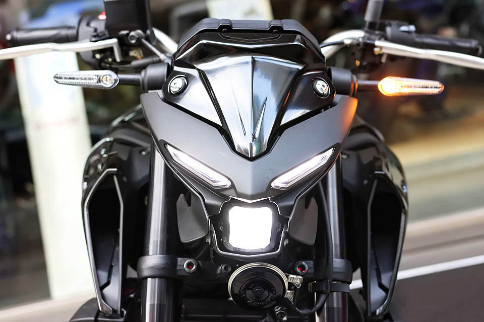 全新的MT-03最吸引人的地方莫過于車頭部分,這種全新風格的車頭被稱為“雙眼式豬嘴型鬼面罩”,新款車型全車均采用LED形式燈源,所以在亮度上有了充分的保障。