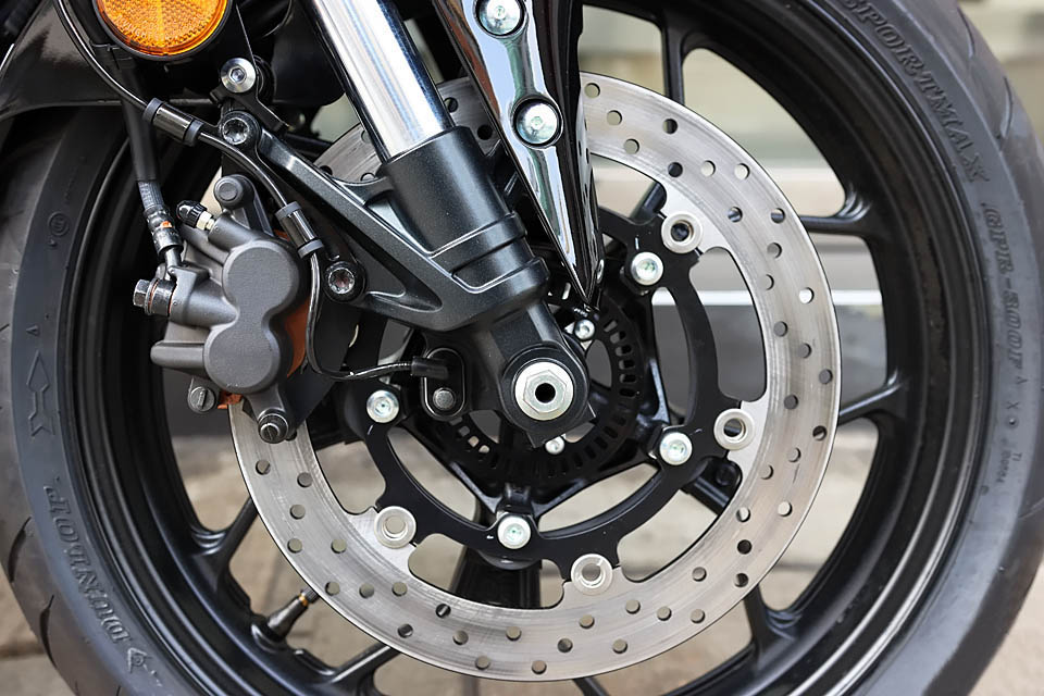 后制動規(guī)格為:220mm剎車碟,配單活塞剎車卡鉗。后搖臂比較粗壯,并不是那種非常廉價的管狀后搖臂。
