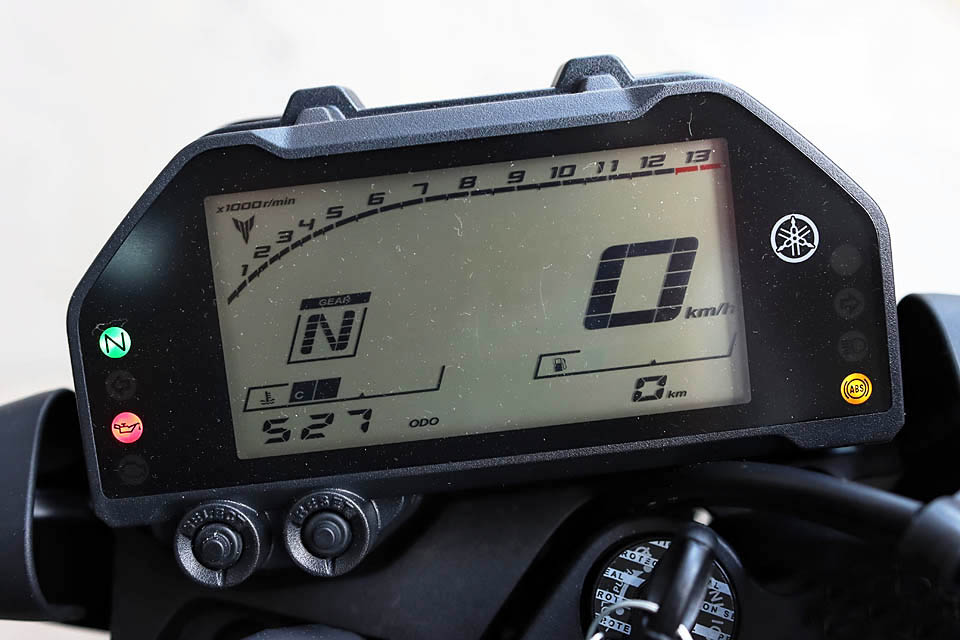 老款的組合式儀表,也升級為大尺寸全LED液晶屏,雖然并不是當下流行的全彩TFT,但是好在布局合理辨識度極高,就連老大哥MT-09也沒有全彩TFT儀表。