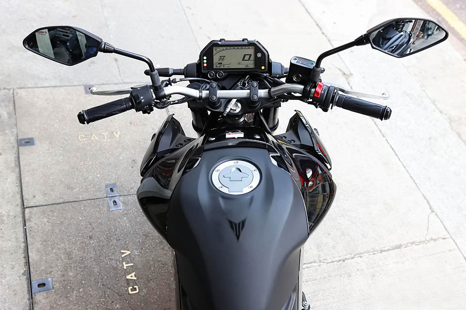 新款車型的駕駛艙非常干凈利落,油箱造型也充斥著戰(zhàn)斗氣息,纖細的腰身讓MT-03在日常騎行當中表現的非常靈活。
