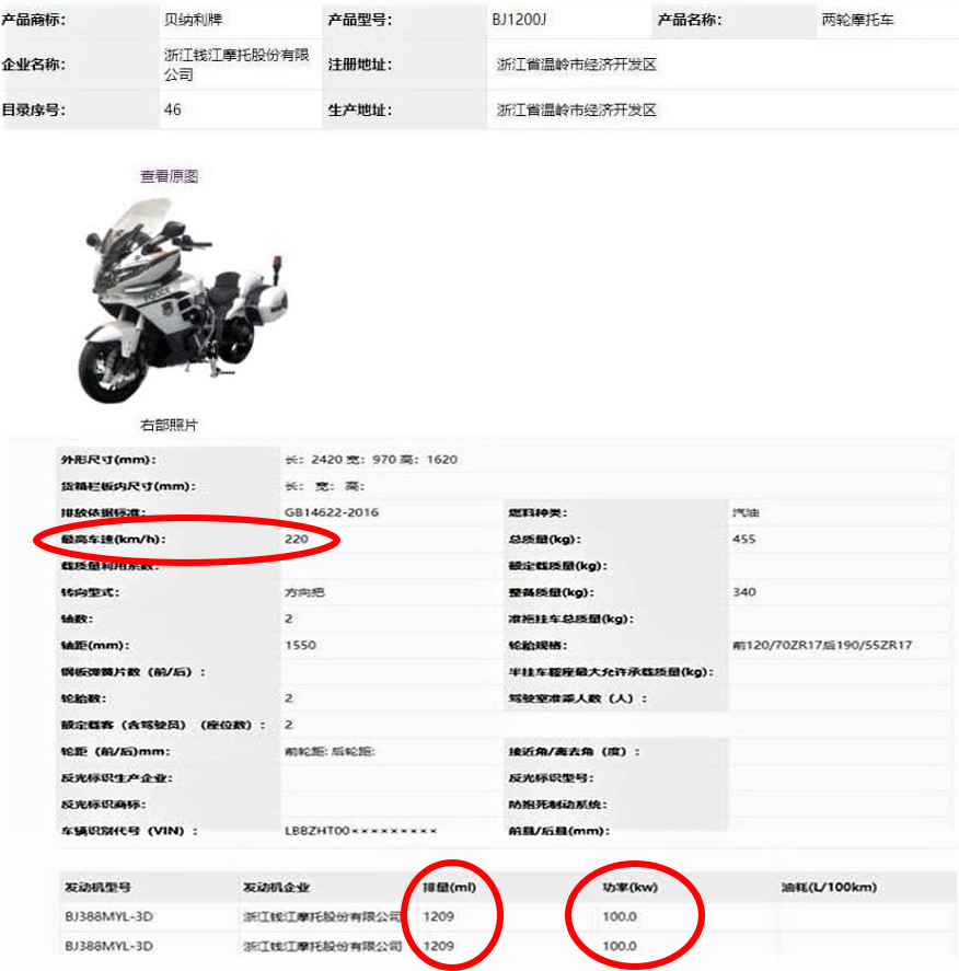 據悉BJ1200J的發(fā)動機,是以貝納利舊的1130cc三缸發(fā)動機為基礎開發(fā),該發(fā)動機曾為貝納利Tre、TreK和Tornado提供動力。這臺1290cc的發(fā)動機,能產生100kw(136ps)的最大功率,要比春風1250j的1278.8cc排量,105kw(142.7ps)略遜一籌。申報信息顯示,貝納利BJ1200J最高車速可達220km/h,對于一臺旅行車而言足以。