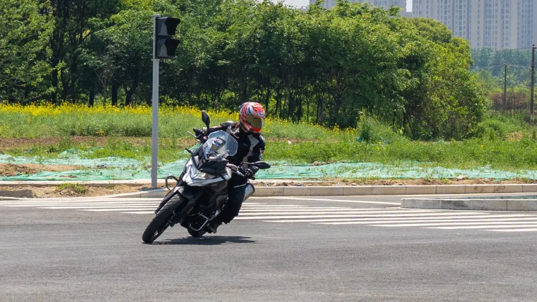 回到制動(dòng)測(cè)試的封閉道路,650DS原廠(chǎng)搭配的前298mm雙盤(pán)單向雙活塞卡鉗,后240單活塞卡鉗,剎車(chē)統(tǒng)一使用日信,在剎車(chē)手感上屬于循序漸進(jìn),手感偏軟,ABS的介入也是在剎車(chē)力道到三分之二處開(kāi)始介入,時(shí)機(jī)較晚,但到后段仍有較強(qiáng)的剎車(chē)力道,幾次因?yàn)榍皠x力度過(guò)大而翹尾,就日常使用來(lái)說(shuō)剎車(chē)配置足夠使用,無(wú)需擔(dān)心。50-0急剎后輪感覺(jué)有些抓地不足的感覺(jué),但沒(méi)有甩尾。就數(shù)據(jù)而言,50km/h-0的最好制動(dòng)距離為10.8m,而30km/h-0的最好制動(dòng)距離為3.8m,這個(gè)成績(jī)還是優(yōu)秀的,在公路路面的行駛制動(dòng)性能足夠。