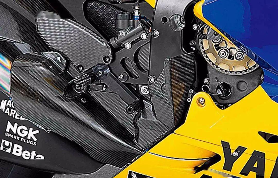 腳踏部分和現(xiàn)款差別不大,但在2006年YZR-M1已經(jīng)配備了電子快速換擋,而后制動桿被設(shè)計得非常短,為的是在右彎也能方便操縱后制動,如今越來越多的車手喜歡用拇指剎車來解決這一問題。