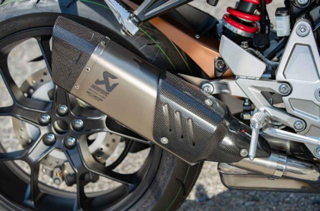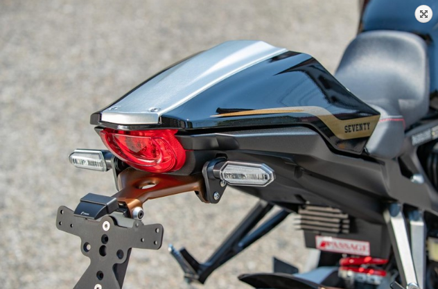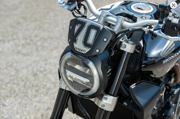 暗灰色陽極氧化的散熱器格柵可以保持更長(zhǎng)的時(shí)間,而70數(shù)字則象征著本田成立70周年。還有許多其他配件,例如激光雕刻的Akrapovic鈦制排氣管,摩托前擋風(fēng)上有70字樣,Kallermann信號(hào)燈,后視鏡和Rizoma的車牌。