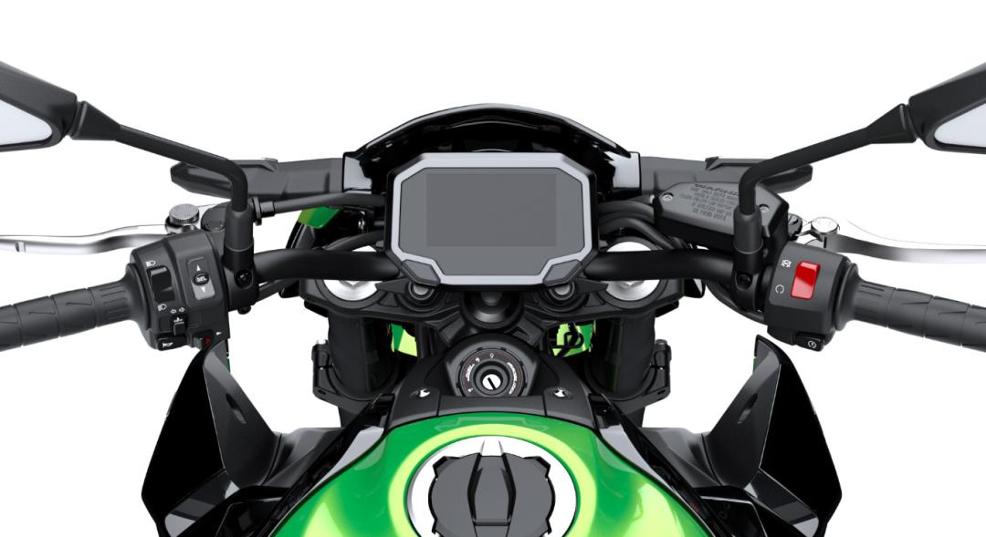 新款Z900外觀上采用了和自家新發(fā)布的機(jī)械增壓旗艦街車Z H2相似的設(shè)計(jì)語言, 尤其是車頭部分的大燈設(shè)計(jì),縮短之前向下拉長的大燈,將左右兩側(cè)的燈殼去除,打造出更有侵略性和張力的大燈。前后燈光及轉(zhuǎn)向燈也都換為LED光源,進(jìn)一步增加了Z900的科技感。儀表在這次也得到了升級,換為川崎新一代的全彩TFT液晶儀表,顯示信息更全,包括導(dǎo)航、手機(jī)來電、電子郵件等內(nèi)容,且支持與手機(jī)之間的藍(lán)牙連接,并可在川崎專屬的APP上查看愛車信息。