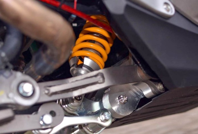 雙懸架避震器被丟棄,替換成放置在中間的Monoshok懸架,這樣顯得非常與眾不同。隨著Pro-link系統(tǒng)的出現(xiàn),改裝者制造了一個(gè)額外的緊固件或安裝件,該附件或安裝件也可以用作放大器,因?yàn)槿绻氡3制椒€(wěn)操作,則懸架是至關(guān)重要的關(guān)鍵,擺臂材料為鋁制CNC,具有可靠的強(qiáng)度和出色的外觀。