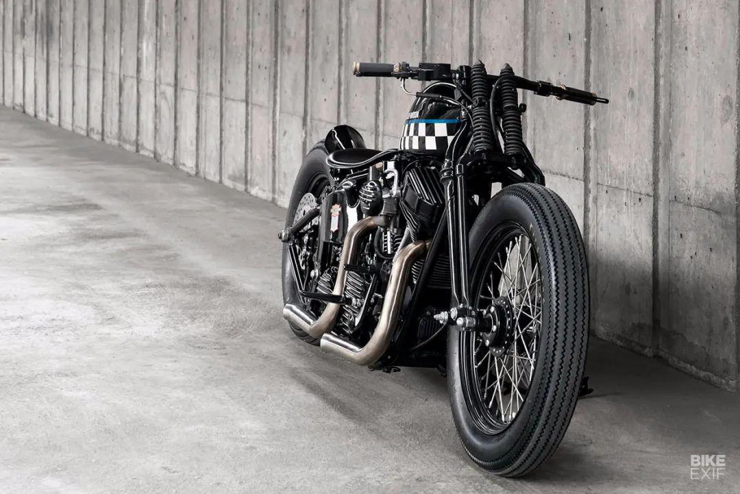在東南亞選擇騎一款笨重的哈雷是不明智的,所以設計師想辦法將它做得更加輕巧。他從1941年哈雷推出的WRTT賽車上找到了靈感,WRTT不僅精簡了零件,同時還有那個年代更出色的發(fā)動機零部件。所以設計師套用了這個思路,來改裝這款哈雷繼承者。設計師拆除了多余的零部件,這讓車身變得更窄,并使用了老式減震和副車架來降低車身高度,風格特色一下就突顯出來了。繼承者采用的是前后16寸輪轂,為了更有視覺效果,前輪換成了19寸輪轂,順便升級了一下前后制動系統(tǒng)。