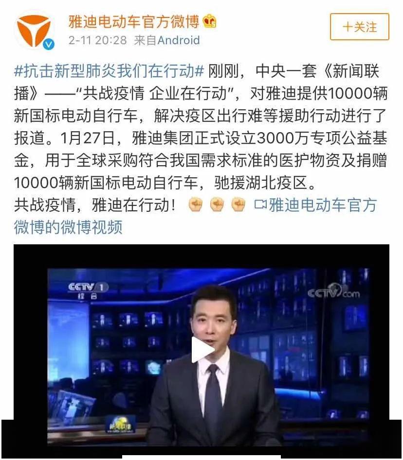 在一些頗為“復雜”的社會難題中,雅迪的反應之快與積極,令人動容。比如今年影響全球的新冠疫情,雅迪在疫情爆發(fā)初期就成立“3000萬專項公益基金”,馳援湖北武漢,并捐贈10000輛符合新國標電動自行車等,解決抗疫一線醫(yī)護工作人員出行難的問題。