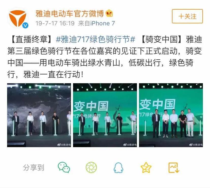 作為電動車行業(yè)領導者,雅迪不僅致力于企業(yè)經營,還主動積極承擔著社會責任。其實,雅迪并非最近才為環(huán)保和公益發(fā)聲。如果仔細瀏覽雅迪的官方微博,會發(fā)現除了對產品和活動的日常宣傳外,其他的內容都離不開對綠色出行、公益活動的倡導。