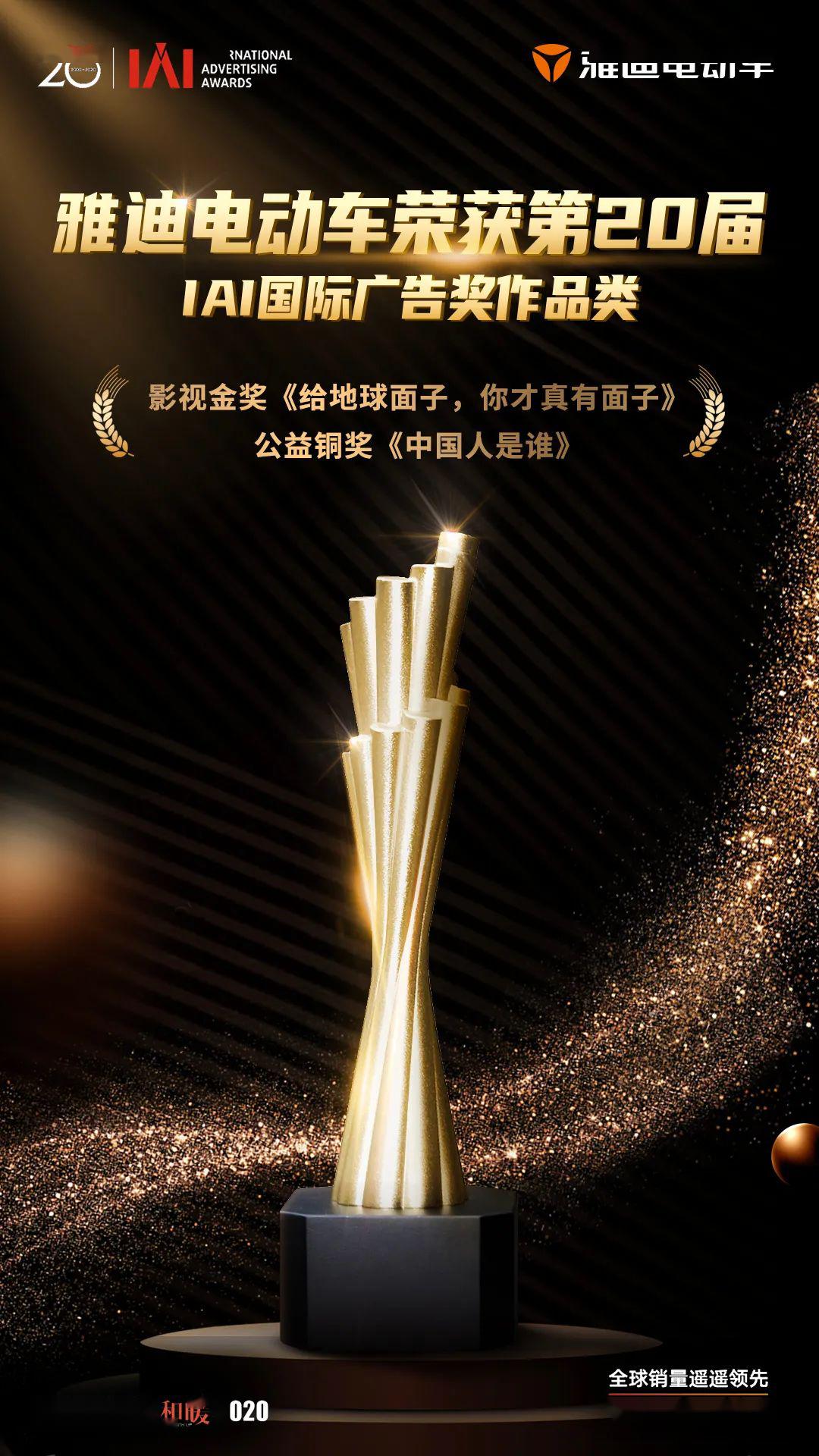 值得一提的是,憑借這條短片,雅迪電動車拿到了IAI影視類金獎。什么是IAI獎?已經創(chuàng)辦19年的IAI國際廣告獎,業(yè)已成為兩岸四地品牌與廣告營銷行業(yè)的頂級盛會,是廣告創(chuàng)意最高水平及潮流趨勢的風向標。
